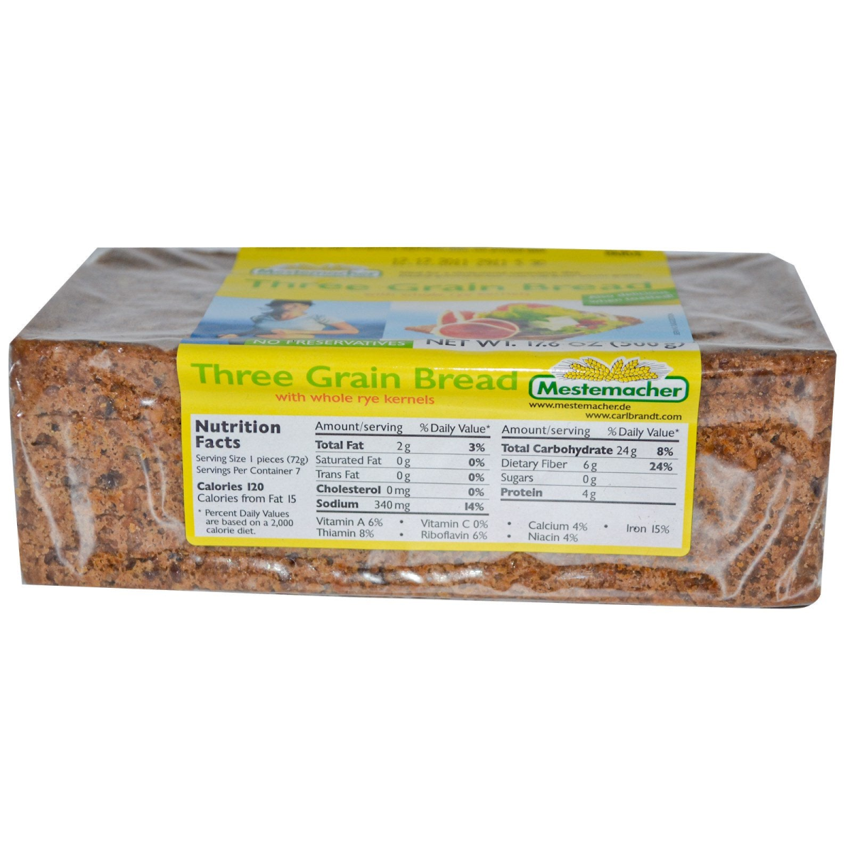 Mestemacher Three Grain Bread with Whole Rye Kernels 17.6 oz (500 g)