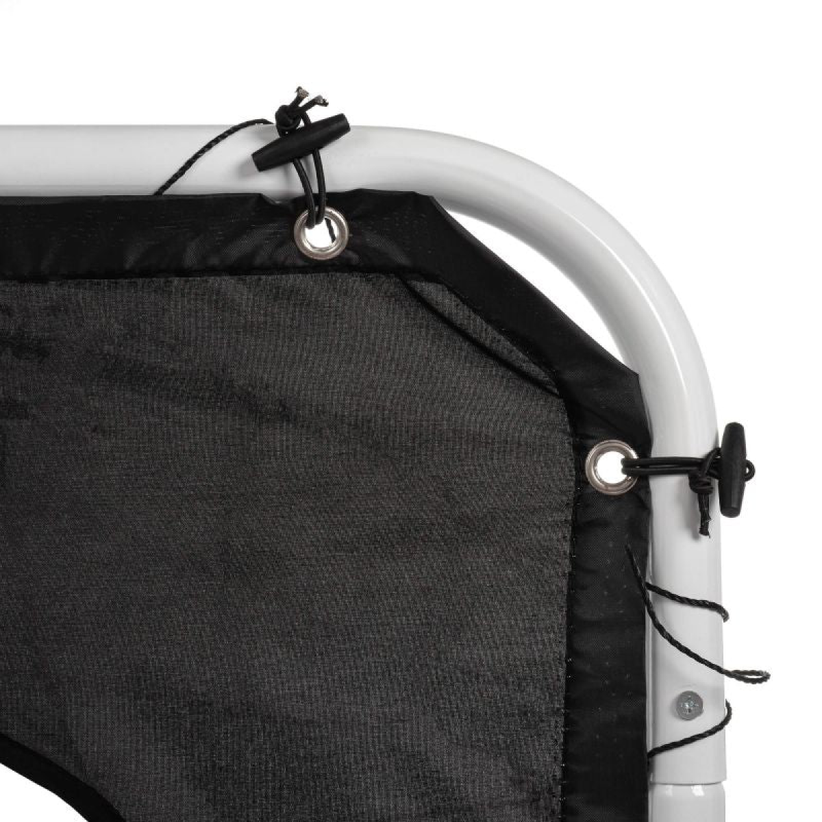 The net is made of UV- and impact-resistant polyester fabric. The material is also flexible, lightweight, and resistant to damage and weather conditions.
