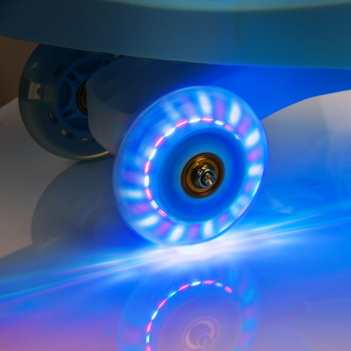 - Front wheel: 80x24 mm, with LED lights