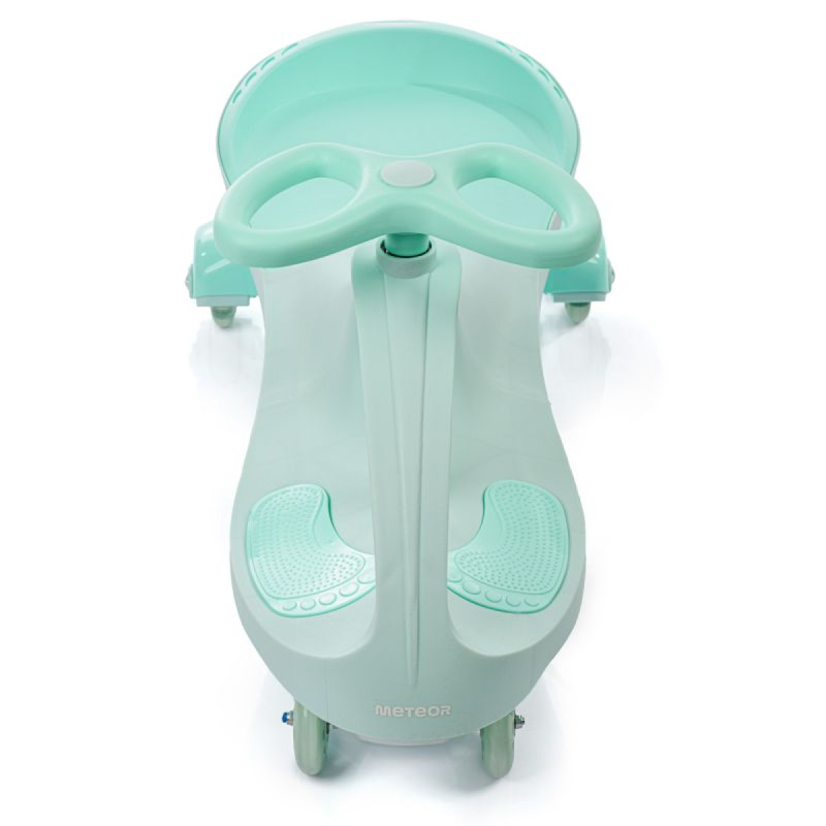 - The Meteor ride-on has a contoured seat with a slight rise that prevents the child from slipping out of it while riding.