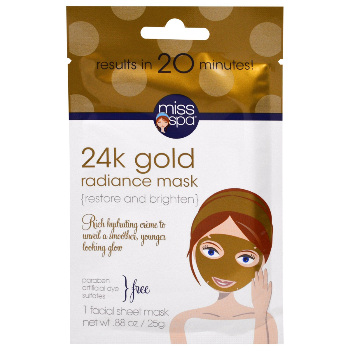 Miss Spa, 24k Gold Radiance Mask, 1 Facial Mask
