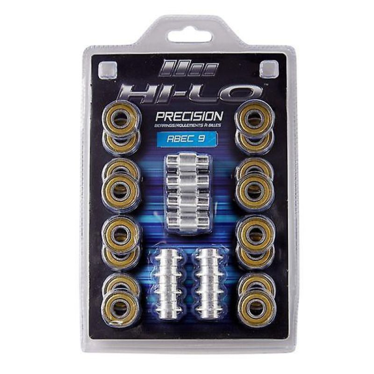 Hi-Lo ABEC 9 608 Skate Bearings offer high-quality build quality at an affordable price. Built by Mission, Hi-Lo ABEC 9 bearings come with chrome-plated steel bushings and balls. They're pre-lubricated with synthetic grease and factory-spun, meaning they're ready to go right out of the box. This set includes: 16 Hi-Lo ABEC 9 bearings, 8 bushings, 8 short bushings, Size: Standard 608
