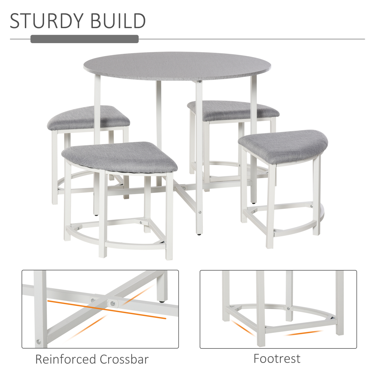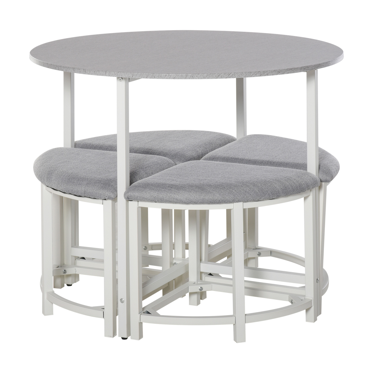 Modern Round Dining Table Set with 4 Upholstered Stools for Dining Room