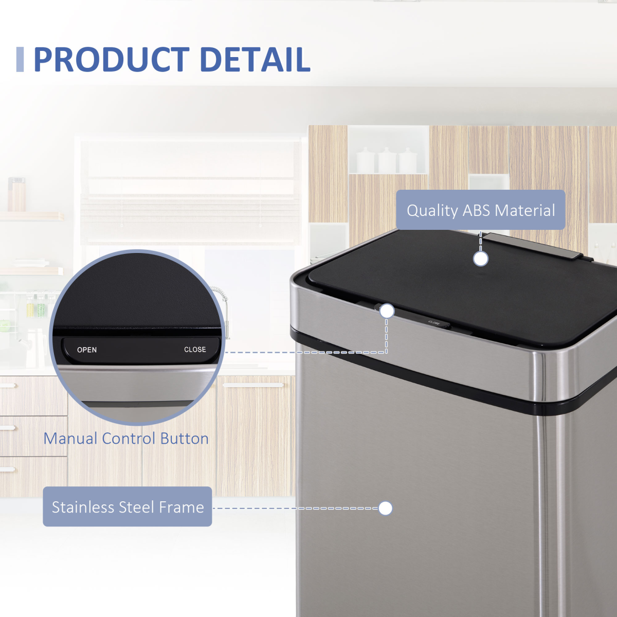 INFRARED SENSOR: Quickly and smoothly lifts up top lid within 15cm to avoid it opening all the time, keeps hygiene to the maximum and is ideal for when your hands are both full.THREE COMPARTMENTS: One main compartment and two compartments on the bottom drawer of this trash can, allows you to separate and organise your rubbish, for example, wet, dry and recycling.ABS PLASTIC: Rust-resistant, strong and durable, this sensor garbage bin with a stainless steel look finish for a sleek and stylish look. 72 LITRE CAPACITY: Great for busy households and offices.EASY CLEAN: Fingerprint-proof surface and removable lid and inner bins to keep this recycling sensor dustbin hygiene and cleanliness at its maximum. 6 X AA BATTERIES REQUIRED (NOT INCLUDED).DIMENSIONS: 81H x 42L x 30Wcm. Lid cover: 9H x 42L x 30Wcm. Inside opening: 39L x 26Wcm. Upper bin: 37H x 39L x 29Wcm. Lower bin: 32H x 23.5L x 17Wcm.