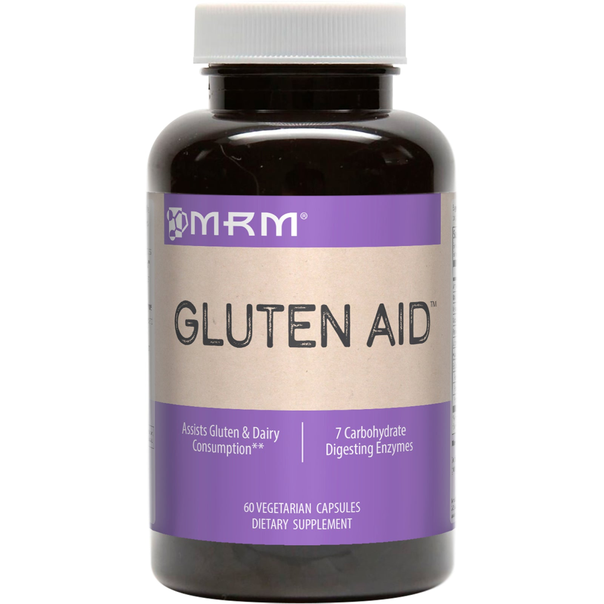 Assists Gluten & Dairy Consumption 7 Carbohydrate Digesting Enzymes Dietary Supplement GMP - Good Manufacturing Practices - Produced in a Certified Facility Gluten Aid is an enzyme blend developed to assist the digestion of grains (rye, wheat, barley, etc.) and foods containing dairy. Sensitivity to these foods can be attributed to the incomplete digestion of certain peptides found in gluten and dairy protein. MRM’s Gluten Aid exhibits 550 units of Dipeptidyl peptidase IV (DPP IV), an enzyme activity that effectively breaks down these peptides. Additionally, carbohydrate digesting enzymes are included to facilitate the breakdown of the starches and fibers that surround the gluten protein. The enzyme lactase is added to further aid in milk lactose digestion. Assists with gluten & dairy consumption. With DPP IV enzyme activity. 7 carbohydrate digesting enzymes.