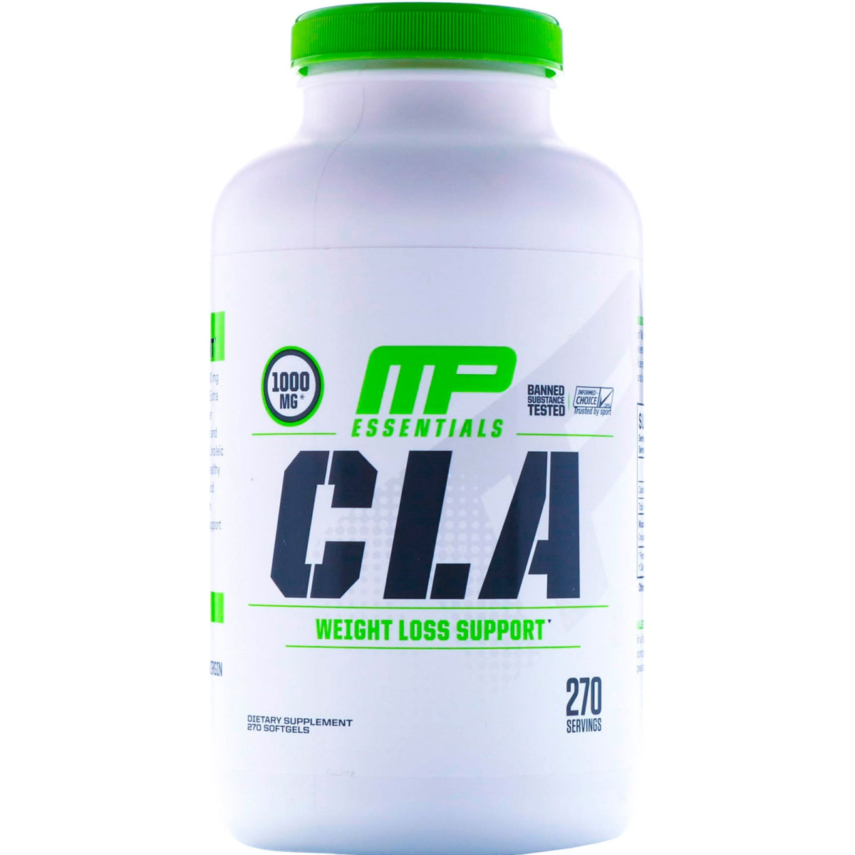 1000 mg* Banned Substance Tested Informed-Choice Trusted by Sport Weight Loss Support Dietary Supplement 270 Servings Made in a cGMP Registered Facility Stimulant-Free Weight Management MusclePharm CLA features a 1,000 mg blend of Conjugated Linoleic Acid, Extra Virgin Olive Oil, and Avocado Oil per serving to help support weight loss and maintain lean muscle. Conjugated Linoleic Acid, commonly referred to as a "healthy fat", is a naturally-occurring fatty acid found in several foods and has been shown in many clinical studies to support lean body composition. What are you waiting for? Key Features Support Weight Loss 1,000 mg Blend of CLA, Extra Virgin Olive Oil, and Avocado Oil Maintain Lean Muscle *1,000 milligram blend of CLA, extra virgin olive oil, and avocado oil per serving