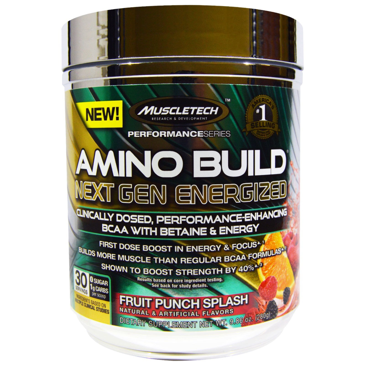 Muscletech, Amino Build Next Gen BCAA Formula With Betaine Energized, Fruit Punch Splash, 9.86 oz (280 g)