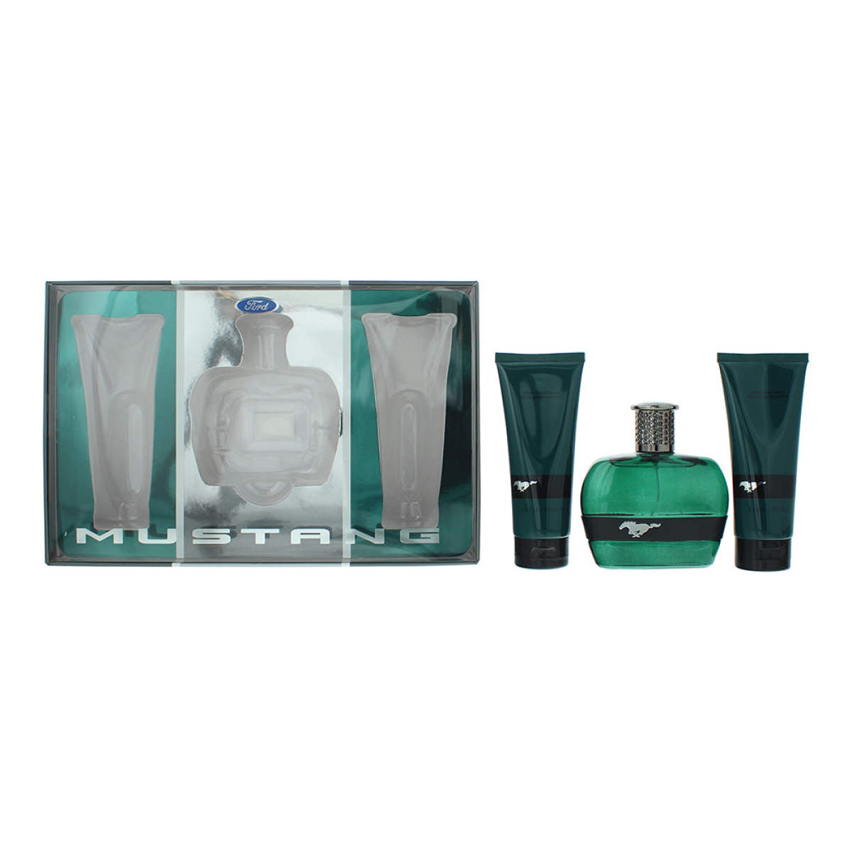 Mustang Green 3 Piece Gift Set: Eau de Toilette 100ml - Aftershave Balm 100ml - Hair Body Wash 100ml