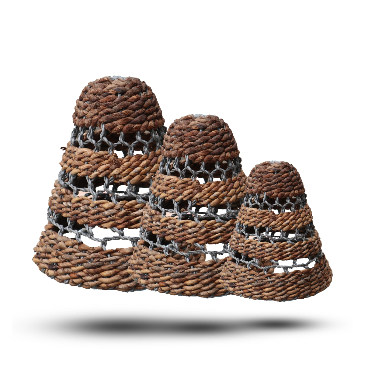 Natural Banana Leaf & Abu-Abu Raffia Lamp Shades - Set of 3