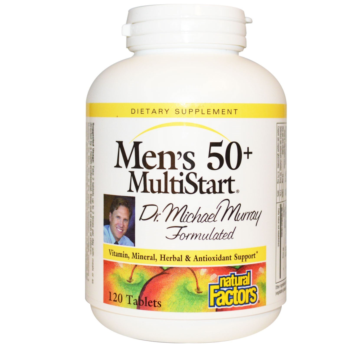 Dietary Supplement Dr. Michael Murray Formulated Vitamin, Mineral, Herbal & Antioxidant Support Purity & Potency Guaranteed MultiStart for Men 50+ is the perfect foundation multiple containing a complete spectrum of nutrients, herbs and antioxidants in the ideal ratio and dosage. MultiStart reduces the need for supplemental pills such as vitamin E or saw palmetto and ensures that correct and balanced levels of important nutrients, herbs and antioxidants are delivered to the body, specific to the nutritional needs of men over 50. All Natural Factors products are manufactured in accordance with the Government of Canada's Good Manufacturing Practices (GMP), among the highest standards in the world.