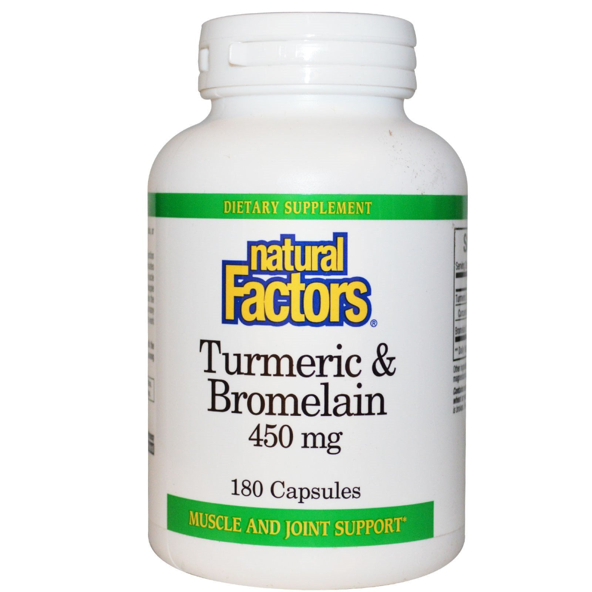 Dietary Supplement Muscle and Joint Support Purity & Potency Guaranteed Natural Factors Bromelain and Turmeric capsules enhance digestion naturally while supporting and protecting the liver. Turmeric stimulates digestion, supports the liver and has a role in maintaining healthy muscle and joints. Bromelain, an enzyme isolated from the stem of the pineapple plant, aids in digestion by breaking down protein and also enhances the absorption of Turmeric. Recent studies also show that Bromelain has many health promoting properties. These superior standardized extracts work together, a classic combination. All Natural Factors products are manufactured in accordance with the Government of Canada's Good Manufacturing Practices (GMP), among the highest standards in the world.