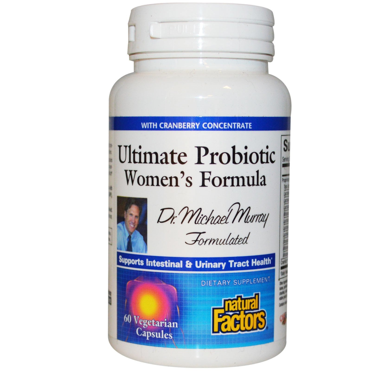 With Cranberry Concentrate Dr. Michael Murray Formulated Supports Intestinal & Urinary Tract Health Dietary Supplement CranRich Dr. Murray's Ultimate Probiotic, specifically formulated for women, contains a proprietary blend of only the most potent bacteria strains that work synergistically guaranteeing maximum activity. The formula contains CranRich to support urinary tract health. All Natural Factors products are manufactured in accordance with the Government of Canada's Good Manufacturing Practices (GMP), among the highest standards in the world.