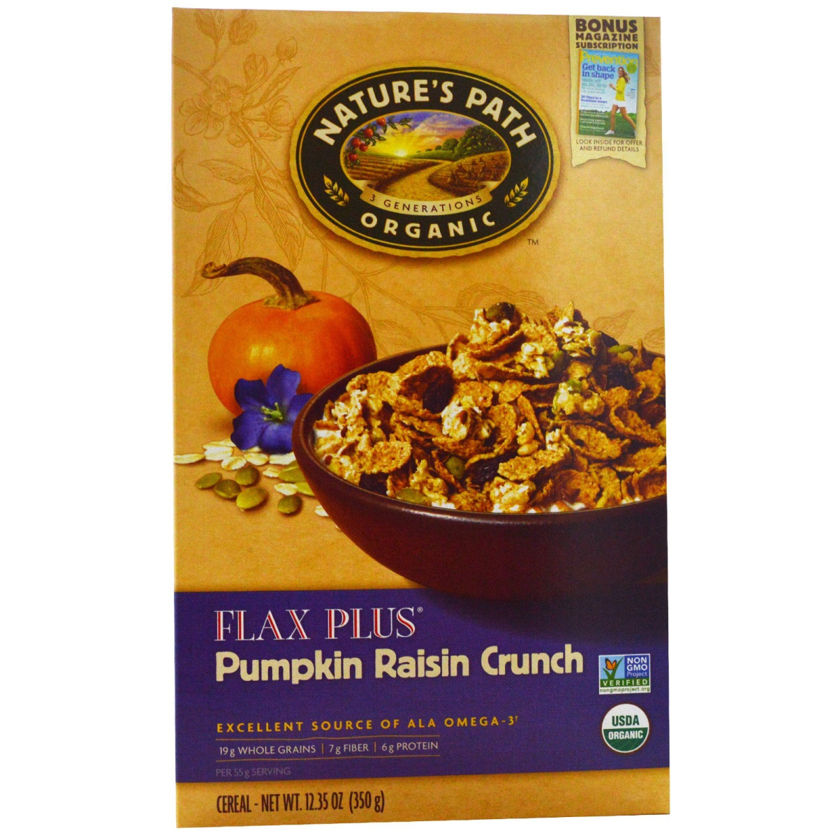 Non GMO Project Verified 3 Generations Excellent Source of ALA Omega-3†USDA 19 g Whole Grains / 7 g Fiber / 6 g Protein - Per 55 g Serving Whole Grain High Fiber Contains 4.5 g Fat Per 55 g Serving Vegan Whole Grain 19 g or More Per Serving Eat 48 g or More of Whole Grains Daily Certified Quality Assurance International Quality Guarantee "You Have The Right To Know What's In Your Food." Unfortunately, we don't have this right when it comes to buying food containing GMOs. What's A 'GMO'? They're 'genetically modified organisms’, plants or animals created through the gene splicing techniques of biotechnology. It merges DNA from different species, creating combinations of plant, animal, bacterial and viral genes that can't occur in nature. Why The Concern? The long term health and environmental effects haven't been properly tested. That's why over 64 countries have placed significant restrictions, labeling laws, or outright bans on GMO products. Right now, the U.S.A. is not among them. Avoid GMOS- Eat ! The best way to avoid GMOs? Eat ; certified foods are prohibited from using GMO seeds. You can also avoid them by looking for the Non-GMO Project Verified seal. As a company, we've always fought for clear labeling of GMO foods, a fight you can join! Together we can make change happen! Arran Stephens, Nature's Path Founder & Garden-Keeper †Contains 0.5 g of ALA Omega-3 per serving, which is 31% of the recommended daily value of 1.6 g