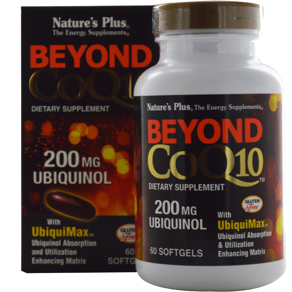 The Energy Supplements Dietary Supplement With UbiquiMax Ubiquinol Absorption and Utilization Enhancing Matrix Gluten Free Kaneka QH Nutritional support for cardiovascular health, healthy antioxidant function and overall well-being. Nature's Plus Beyond CoQ10 provides an astounding 200 mg of the world's finest pharmaceutical grade ubiquinol, the most absorbable form of Coenzyme Q10. And Beyond CoQ10 is the world's only CoQ10 supplement supercharged with UbiquiMax Absorption and Utilization Enhancing Matrix. The minerals in UbiquiMax optimize ubiquinol absorption by supporting the formation of micelles, the microscopic nutrient structures essential to absorption through the intestinal walls. Cofactors Alpha Lipoic Acid, Pyruvate, P5P and L-Carnitine optimize ubiquinol utilization by supporting enzymatic antioxidant activity and efficient Krebs cycle energy production. Each easy-to-swallow softgel also supplies essential and non-essential unsaturated fatty acids from high quality sunflower lecithin and safflower oil.