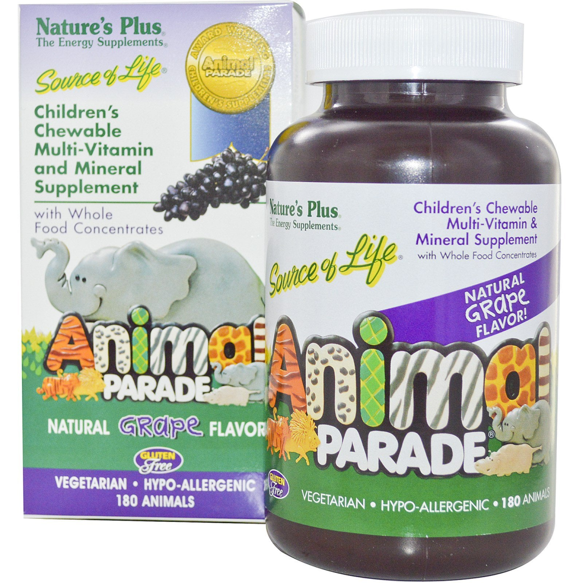The Energy Supplements Award Winning Children's Supplements With Whole Food Concentrates Gluten Free Vegetarian Hypo-Allergenic Nutritional Support for Natural Energy Production and Overall Well-Being. Delicious Natural Grape Flavor! Source of Life Animal Parade has long been recognized as the health food industry's number one children's chewable multivitamin, mineral and whole food supplement. We’ve now added to the original line: new Animal Parade Grape, with the classic taste-zing that children love. This incredibly popular product owes much of its success to the unique combination of high quality nutrients and delicious flavor.