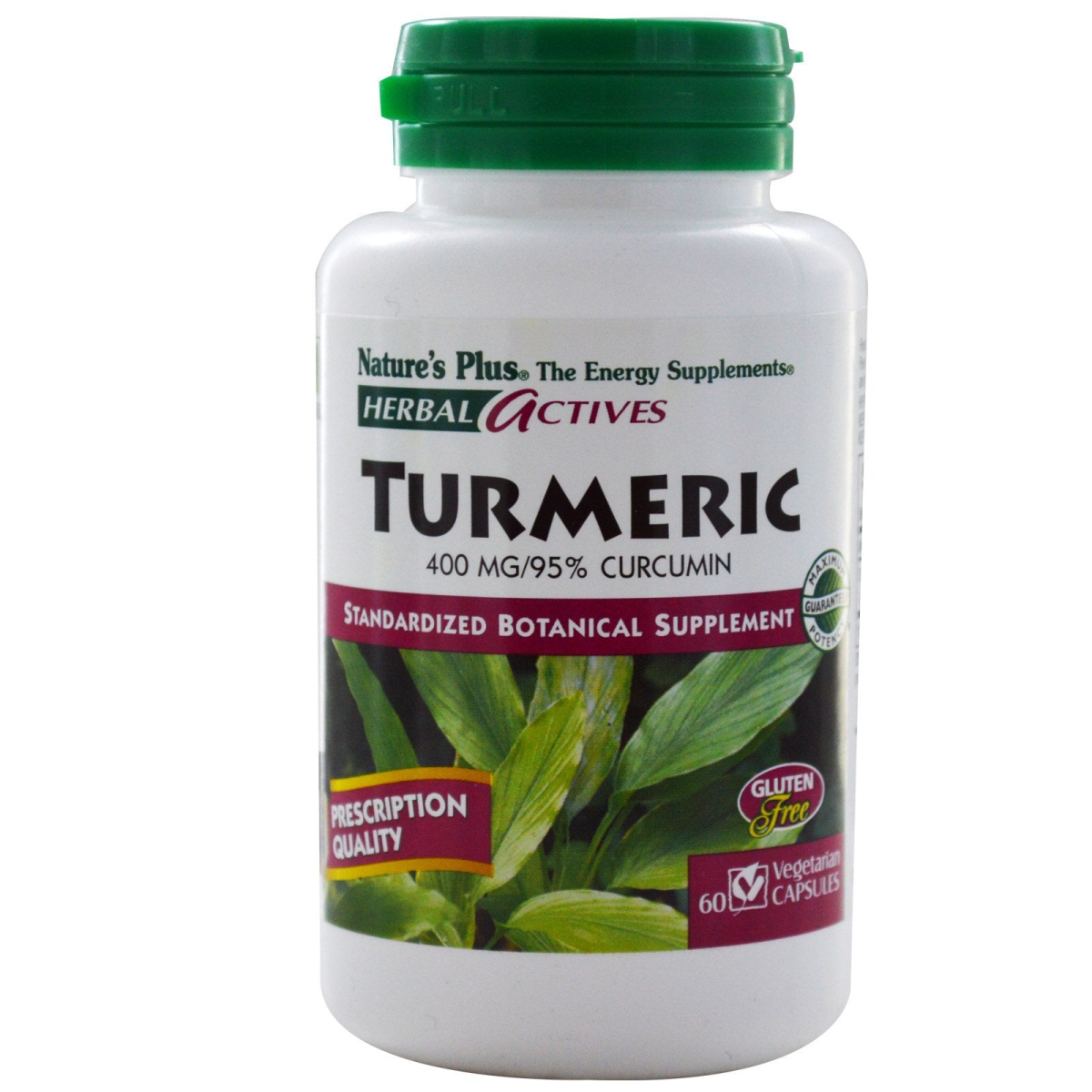 The Energy Supplements 400 mg/95% Curcumin Standardized Botanical Supplement Maximum Potency Guaranteed Prescription Quality Gluten Free Hypo-Allergenic Vcaps HerbaShield Nutritional support for general well-being. Each Herbal Actives Turmeric capsule, providing the greatest concentration of active botanical principles, maximizes the synergistic benefits of the whole rhizome, which naturally contains turmerone and zingiberine. Guaranteed Maximum Potency: Each Herbal Actives formula is scientifically standardized to the highest level of active principles. HerbaShield: An exclusive purity and safety system including light-resistant bottle, airtight inner seal, moisture-absorbing packet, tamper-evident safety cap and tamper-proof full bottle seal.