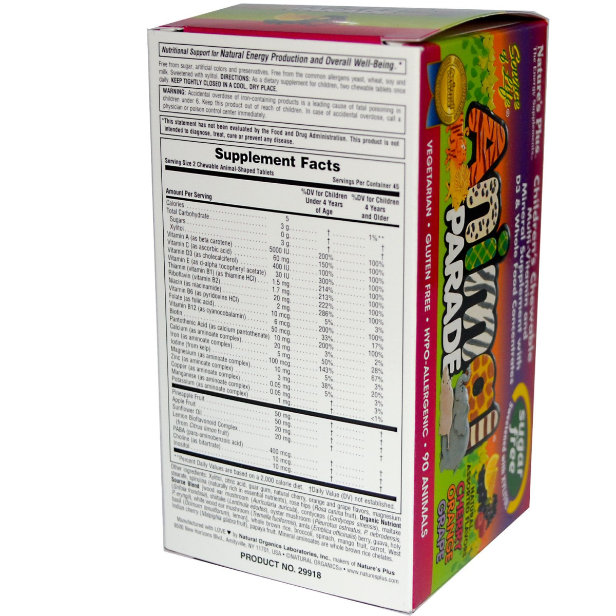 The Energy Supplements Sugar Free Sweetened with Xylitol Multi-Vitamin and Mineral Supplement with D3 & Whole Food Concentrates Cherry, Orange, Grape Award Winning Animal Parade Children's Supplements Vegetarian Gluten Free Hypo-Allergenic Nutritional support for natural energy production and overall well-being.