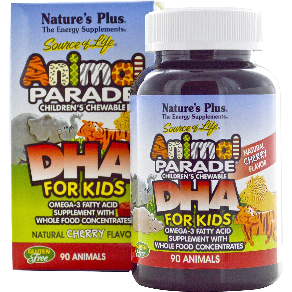 The Energy Supplements Gluten Free Omega-3 Fatty Acid Supplement with Whole Food Concentrates Nutritional support for overall well-being Just three irresistibly luscious, cherry-flavored Animal Parade DHA chewables deliver 40 mg of the essential omega-3 fatty acid DHA, vitamin A, vitamin D, and vitamin E in levels precisely calibrated for children's delicate nutritional needs. And each serving of Animal Parade DHA is supercharged with EFAsorb EFA Absorption Complex for optimal activity. So watch your kids line up for incredibly delicious cherry taste as you support their overall health with Animal Parade DHA.