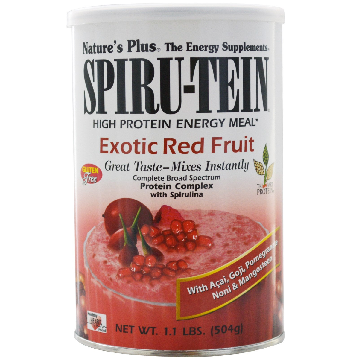 Quality Guaranteed By Independent Laboratory Assays The Energy Supplements High Protein Energy Meal* Gluten Free Great Taste-Mixes Instantly Complete Broad Spectrum Protein Complex with Spirulina Tri-Part Protein With Açai, Goji, Pomegranate Noni & Mangosteen Healthy Heart Food Non-GMO Natural Soy Vegetarian, Yeast-Free Product Non-GMO Natural Soy -Spiru-Tein is scientifically formulated with isolated soy protein from only non-genetically modified (non-GMO) soybeans-As Nature Intended. Healthy Heart Food25 grams of soy protein a day, as part of a diet low in saturated fat and cholesterol, may reduce the risk of heart disease. A serving of Spiru-Tein supplies 6.25 grams of soy protein. Nature's Plus Exotic Red Fruit Spiru-Tein Powder features a unique blend of ingredients, including... Superior Tri-Part Protein Blend: Rice, Pea, Soy 100% Daily Value of all Vitamins Broad profile of essential minerals Energy Nutrients: High Quality Tri-Part Protein and Bee Pollen Diet-Aids: Lecithin, Spirulina, Choline and Inositol Enzymes: Bromelain and Papaya Cleansing: Chlorophyll Fiber: Bran, Cellulose and Apple Pectin *Not to be used as the sole source of dietary calories.