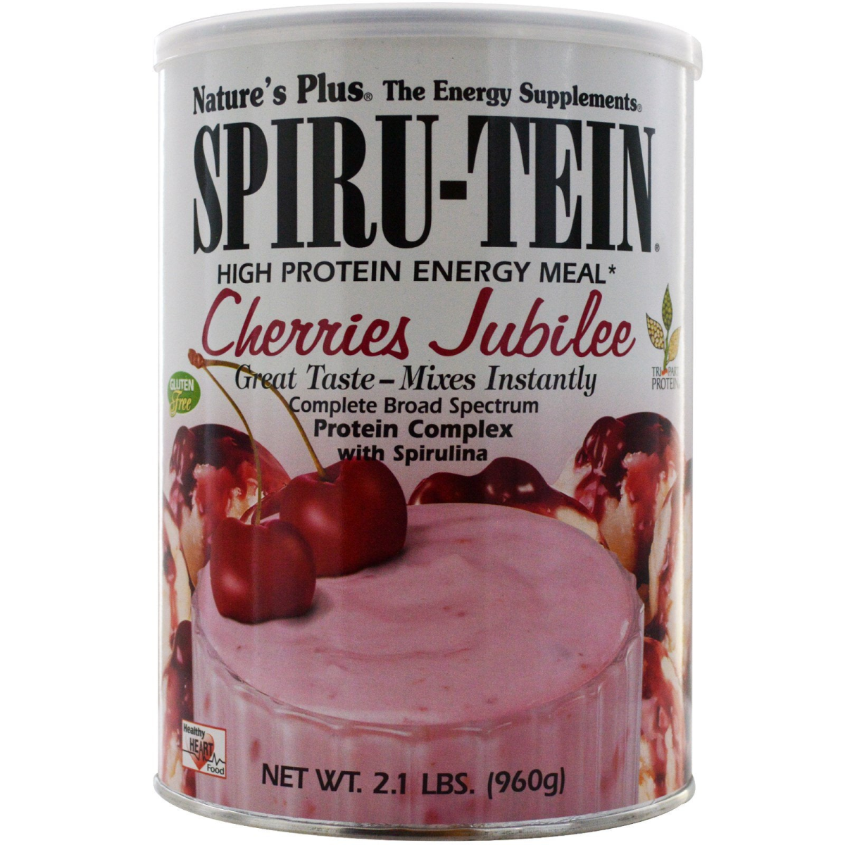 Quality Guaranteed by Independent Laboratory Assays The Energy Supplements High Protein Energy Meal* Gluten Free Great Taste-Mixes Instantly Complete Broad Spectrum Protein Complex with Spirulina Tri~Part Protein Heart Healthy Food Non-GMO Natural Soy Vegetarian, Yeast-Free Product SPIRU-TEIN is scientifically formulated with isolated soy protein from only non-genetically modified (non-GMO) soybeans—As Nature Intended. 25 grams of soy protein a day, as part of a diet low in saturated fat and cholesterol, may reduce the risk of heart disease. A serving of SPIRU-TEIN supplies 6.25 grams of soy protein. Nature's Plus Cherries Jubilee SPIRU-TEIN Powder features a unique blend of ingredients, including... Superior Tri-Part Protein blend:** Rice, Pea, Soy 100% daily value of all vitamins Broad profile of Essential Minerals Energy Nutrients: High quality soy protein and bee pollen Diet Aids: Lecithin, spirulina, choline and inositol Enzymes: Bromelain and papaya Cleansing: Chlorophyll Fiber: Bran, cellulose and apple pectin *Not to be used as sole source of dietary calories. **Patents Pending