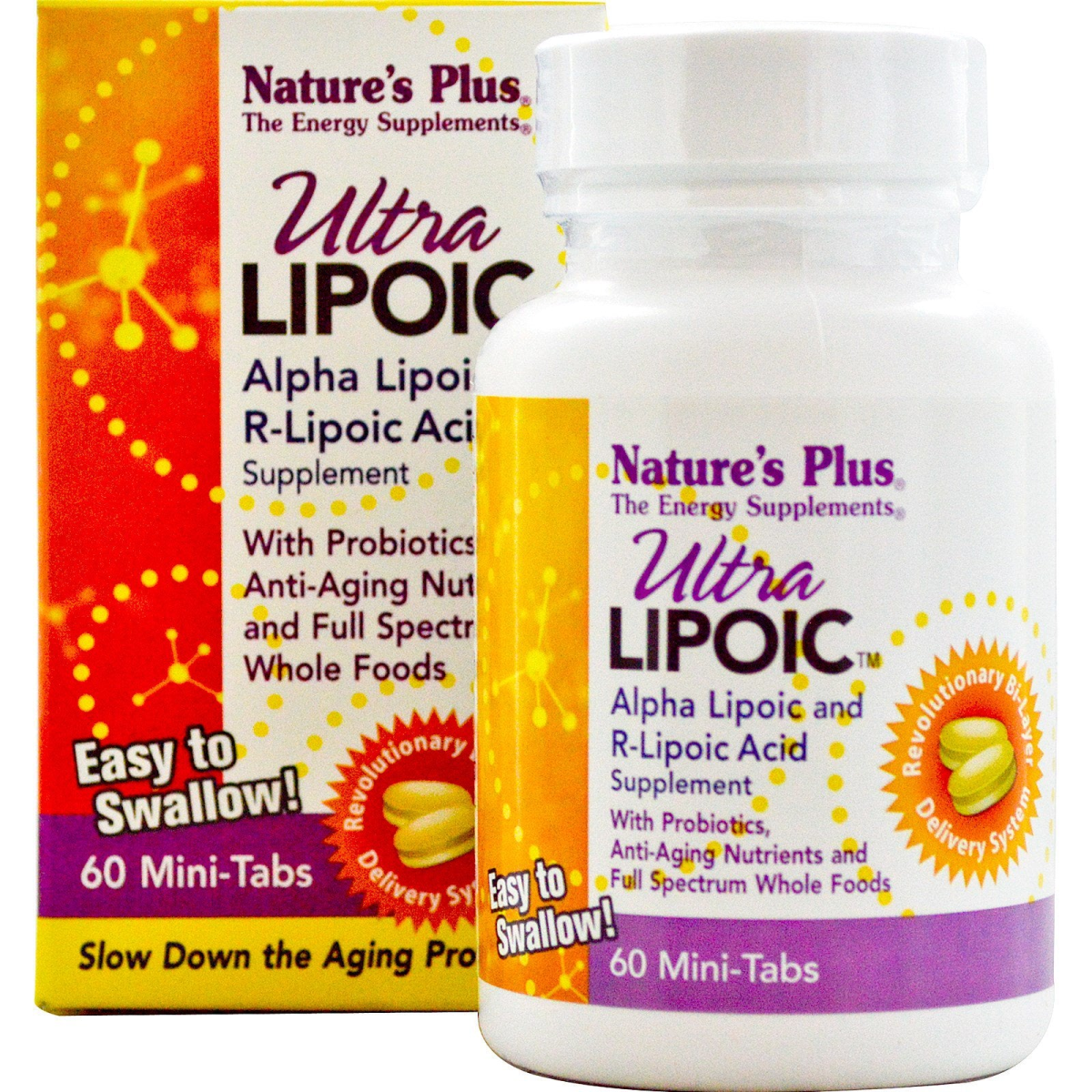 The Energy Supplements Alpha Lipoic and R-Lipoic Acid Supplement With Probiotics, Anti-Aging Nutrients and Full Spectrum Whole Foods Easy to Swallow! Revolutionary Bi-Layers Delivery System Slow Down the Aging Process! Nutritional Support for Overall Well-Being. Nature's Plus Ultra Lipoic Mini-Tabs delivers 500 mg Alpha Lipoic Acid, and an additional 100 mg of R-Lipoic Acid for total body antioxidant, anti-aging nutritional support. Alpha lipoic acid is the premier rejuvenating antioxidant for the widest range of tissues. Proven effective in "high-energy" tissues like the heart, brain, kidneys, nerves and muscles, as well as in "low energy" tissues, such as blood cells, connective tissues and endothelium, alpha lipoic acid is a well-rounded whole-body antioxidant. But Nature's Plus takes lipoic acid supplementation to a whole new level with an additional 100 mg of R-Lipoic Acid for even greater support of high-energy tissues. Cells that need more energy make far better use of R-lipoic than any other form. R-lipoic is the form that target free radicals in those tissues (heart, brain, kidneys, nerves and muscles), helping them function more cleanly and efficiently. The extra 100 mg of R-Lipoic antioxidant power in Nature's Plus Ultra Lipoic Mini-Tabs yields an unmistakable sensation of vitality that no other lipoic acid supplement can match. For even greater synergistic activity, Nature's Plus Ultra Lipoic Mini-Tabs further supplies Lactobacillus acidophilus and K12 probiotics, as well as time-honored standardized botanical extracts and proprietary full spectrum whole food blends. Revolutionary bi-layered delivery provides rapid and extended Lipoic acid support for total health. Nature's Plus ultra Lipoic is your complete, energizing, rejuvenating antioxidant and anti-aging lipoic acid supplement!