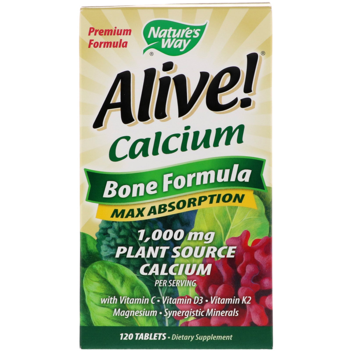 Premium Formula Max Absorption 1,000 mg Plant Source Calcium Per Serving With Vitamin C • Vitamin D3 • Vitamin K2 • Magnesium • Synergistic Minerals Dietary Supplements Gluten Free Plant Source Calcium Alive! Calcium is derived from Lithothamnion (calcified red algae seaweed sustainably harvested from pristine Icelandic waters), kale, spinach and collard greens. Easy to Digest & Utilize While many calcium supplements are sourced from limestone rock or animal bones, Alive! Calcium provides calcium and trace minerals that may be easier for the body to digest, absorb and utilize. Fast Dissolving Alive! Calcium tablets dissolve quickly to help ensure a maximum level of nutrients are available for absorption. Promotes Healthy Bones Adequate calcium intake throughout life, as part of a well-balanced diet and regular exercise, may reduce the risk osteoporosis. Alive! plant source calcium provides 1,000 mg of calcium per serving (100% DV), vitamin C, vitamin D3, vitamin K2, magnesium and supportive minerals. Max Absorption Vitamin D3 enhances calcium absorption and utilization. Bone Density Magnesium and vitamin C help maintain bone density. Gets to Bones, Not Arteries Vitamin K2 (MK-7) directs calcium to the bones where it's needed most, and away from arteries. Additional Minerals Strontium and boron assist calcium in promoting healthy bones.