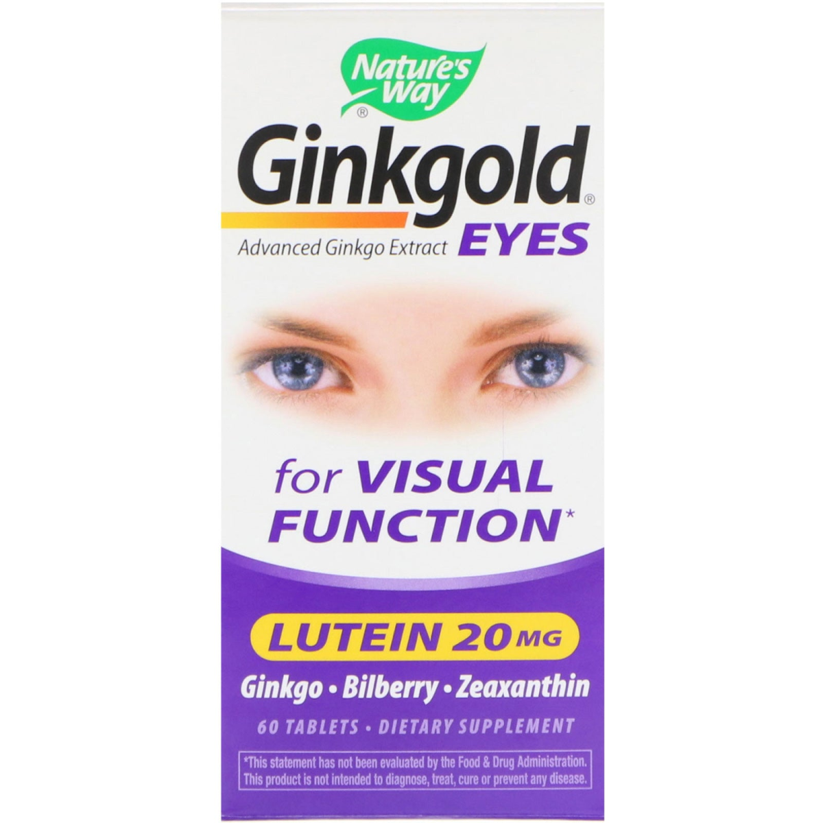 Advanced Ginkgo Extract For Visual Function Lutein - 20 mg Ginkgo - Bilberry - Zeaxanthin Dietary Supplement Retina and Macula Health The retina in the eyes "sees" light and transforms it into nerve impulses that the brain interprets as vision. Maintaining healthy blood vessels and blood flow is the key to proper retinal function. The macula is the central part of the retina where light is focused. Carotenoids (lutein and zeaxanthin) found in the macula are critical to protecting the retina from ultraviolet (UV) light and free radicals. Advanced Ginkgo Extract Made from premium Ginkgo leaves Standardized to 24% Ginkgo flavone glycosides and 6% terpene lactones Over 20 active and coactive constituents Benefits of Ginkgold Eyes Advanced Ginkgo Formula Healthy Blood Flow - Supports healthy capillaries (tiny blood vessels) and micro-circulation. Optimal Night Vision - Supports the retina's ability to adapt to light and dark conditions Macular Support - Provides carotenoids (lutein & zeaxanthin) that are critical to a healthy macula Free Radical Protection - Helps protect against oxidative stress and free radicals