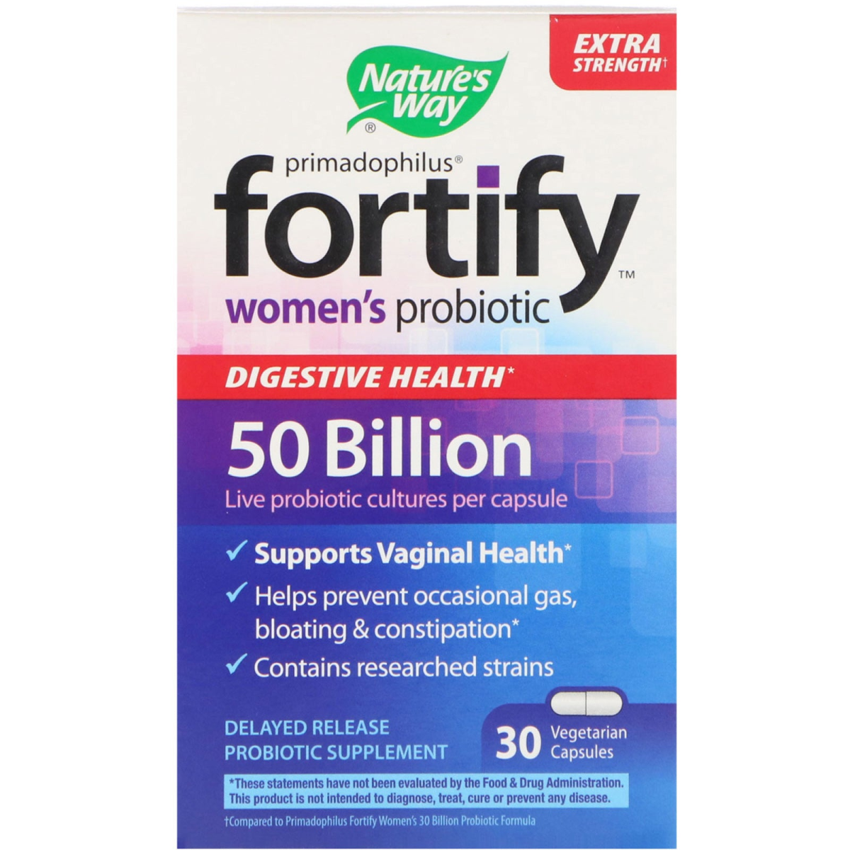 Extra Strength†Digestive Health 50 Billion - Live Probiotic Cultures per Capsule Supports Vaginal Health Helps Prevent Occasional Gas, Bloating & Constipation Contains Researched Strains Delayed Release Probiotic Supplement Gluten Free Balanced for a Woman's Needs Because Lactobacilli are the dominant good bacteria found in a healthy vaginal tract, Primadophilus Fortify Women's probiotic is formulated with 50% more Lactobacilli than Bifidobacteria to help support women's health. 30 billion Lactobacilli to support vaginal health 20 billion Bifidobacteria to support your colon. Digestive Health & More Taking Primadophilus Fortify every day helps: Support vaginal and urinary tract health Prevent occasional gas/boating/constipation Promote immune health Delayed Release Primadophilus Fortify capsules resist stomach acid better than standard capsules to help deliver probiotics to the intestine. Extra Strength†50 Billion While many probiotic brands only provide 1 to 10 billion live cultures per serving, Primadophilus Fortify Extra Strength†are powerful formulas with 50 billion live probiotic cultures per capsule to help balance and replenish your intestinal tract. Researched Strains Primadophilus Fortify Women's contains researched probiotics including NCFM, BI-04 and Bi-07 Guaranteed Potency The 50 billion potency of this product is guaranteed until expiration when stored under recommended conditions. Potency of live cultures measured in Colony Forming Units (CFU). †Compared to Primadophilus Fortify Women's 30 Billion Probiotic Formula
