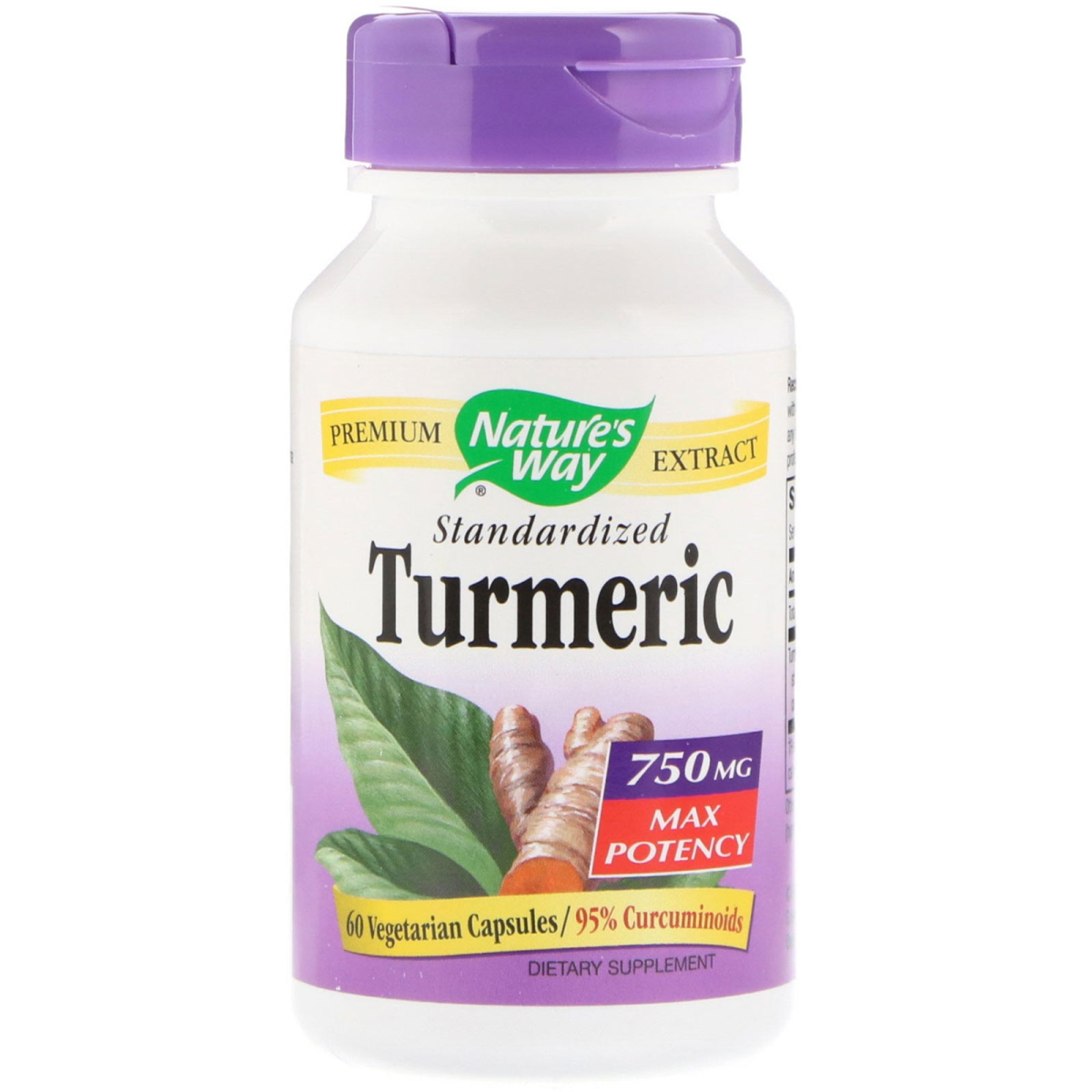 Nature's Way, Turmeric, Standardized, Max Potency, 750 mg, 60 Vegetarian Capsules