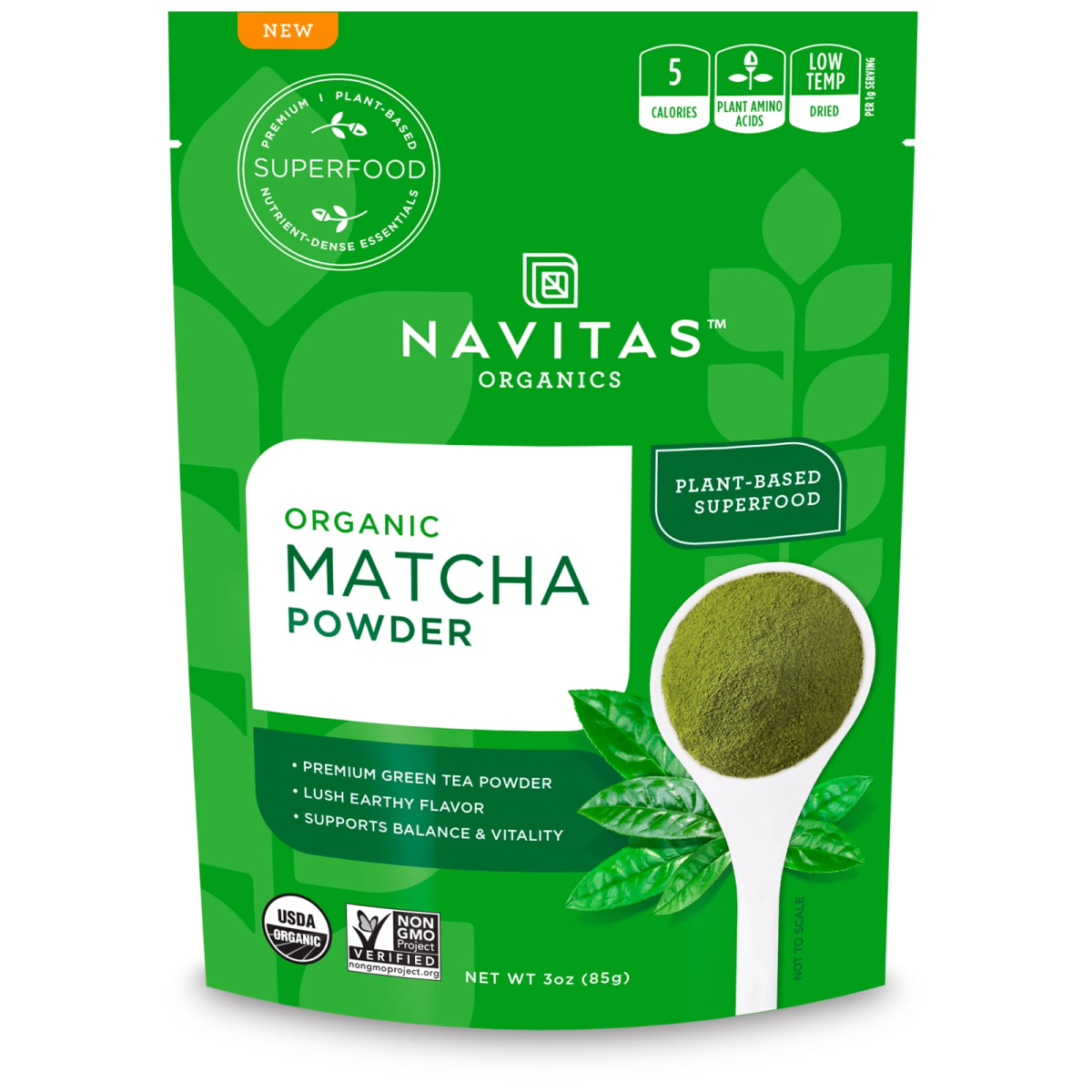 Premium | Plant-Based Superfood Nutrient-Dense Essentials 5 Calories - Plant Amino Acids - Low Temp - Dried – Per 1 g Serving Premium Green Tea Powder Lush Earthy Flavor Supports Balance & Vitality USDA Non-GMO Project Verified Ancient Treasure Nutrient Dense Navitas. Live Life Positive. Certified B Corporation Kosher Gluten Free Vegan Certified by Control Union Certification BPA Free Matcha: Ancient Japanese Ritual Balanced Energy - Mildly Caffeinated†Contains Unique Antioxidants‡ Premium Culinary Grade Superfood Promise: Using the most health-boosting plant in the world, we promise our superfoods are , nutrient-dense & handled with care at every step. Go after each day with passion and drive. Super-simple, super-nutritious superfoods give you the energy you need to live each day to the fullest. In fact, Navitas (Nuh-vee-tus) is Latin for 'energy'. We search the globe for the highest-quality superfoods to keep you energized. What's more we work hard to power the positive in all we do as a company, celebrating health foods and supporting sustainable causes. †Contains 16 mg of caffeine per serving. ‡Contains 42 mg of antioxidants EGCG per serving.