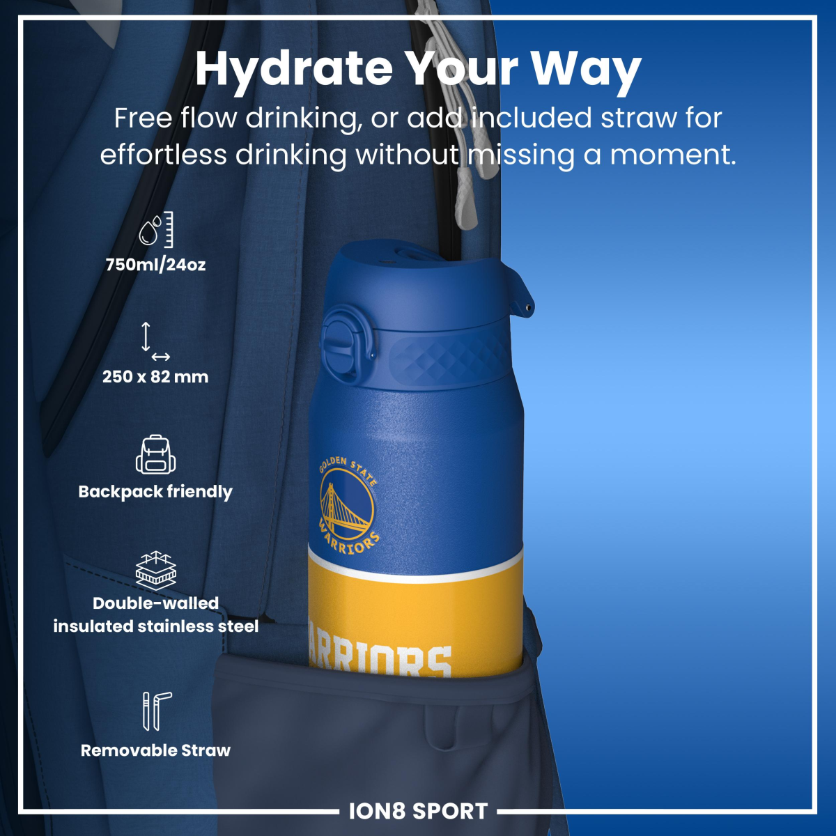 NBA x ION8, Insulated Steel Bottle, GS Warriors, 750ml (24oz)
