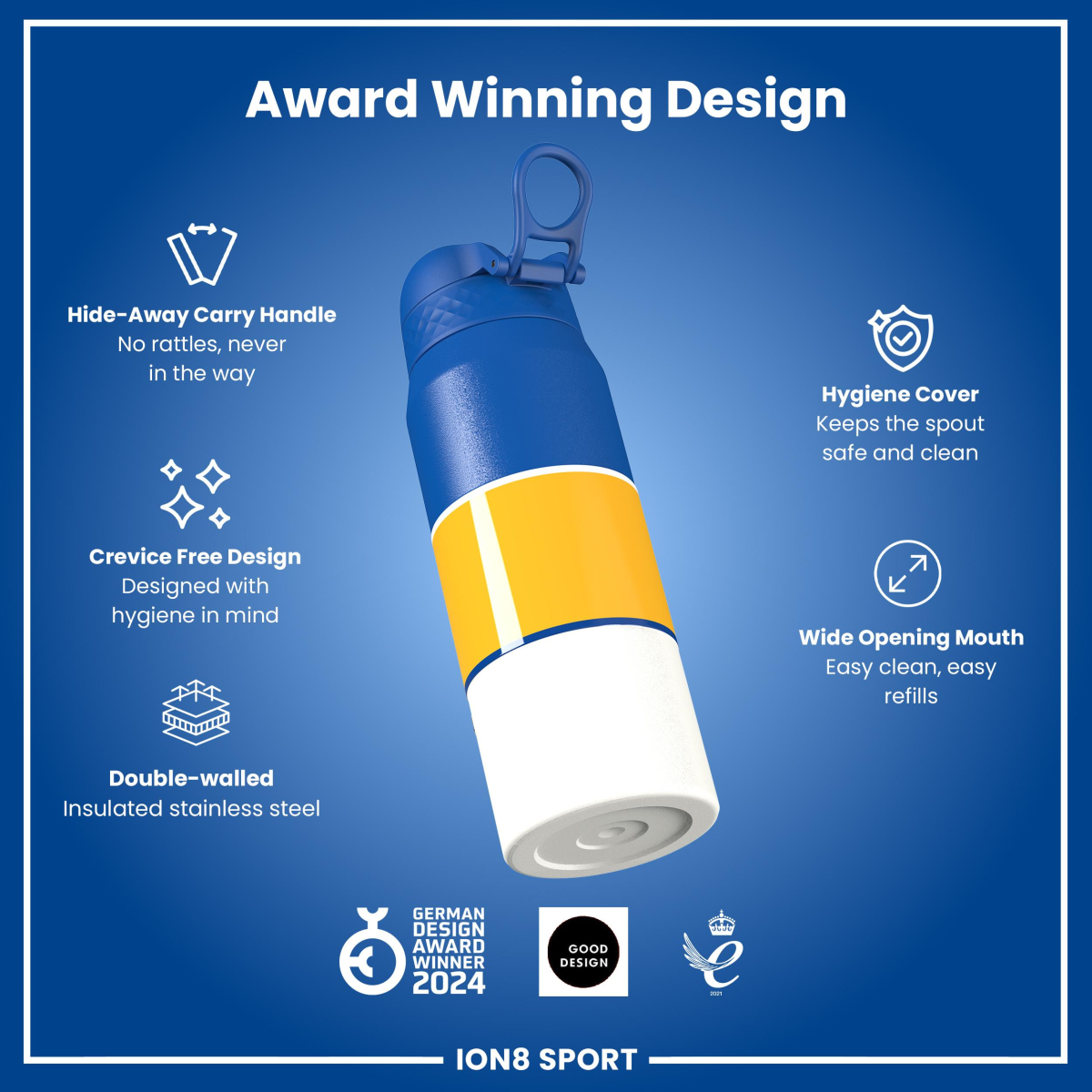 240-Degree Flip-Back Lid: The hygienic, one-touch lid flips back fully for a clear view of the action while you hydrate, keeping you focused in the moment.
