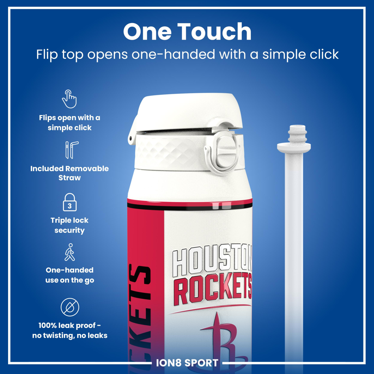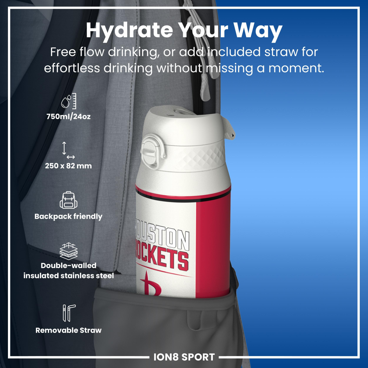 NBA x ION8, Insulated Steel Bottle, Houston Rockets, 750ml (24oz)