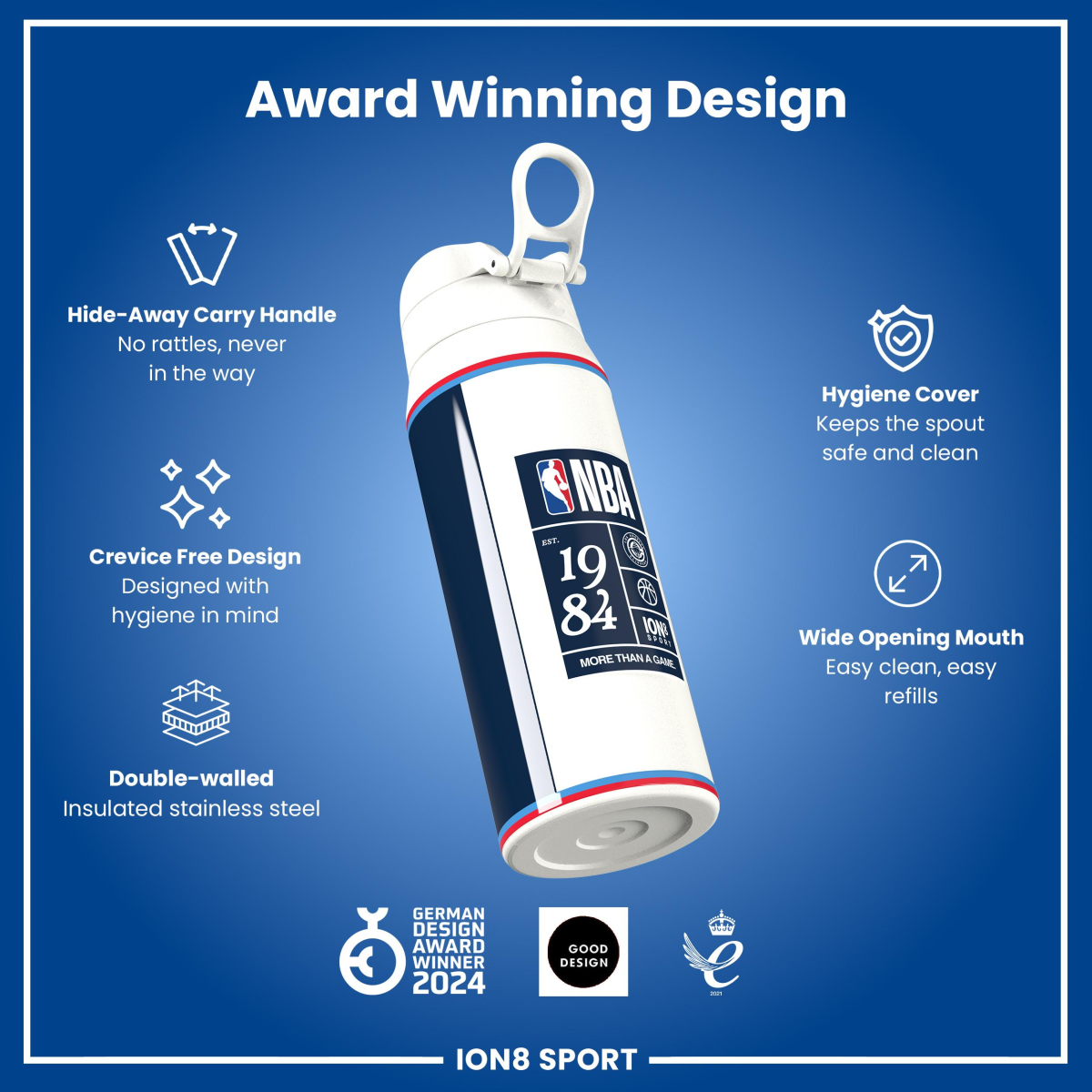 Raise your game with the Official NBA Thermal Insulated Bottle by ION8. Designed to meet the uncompromising standards of NBA, this 750ml double-wall stainless steel bottle combines premium performance with unmistakable NBA pride.