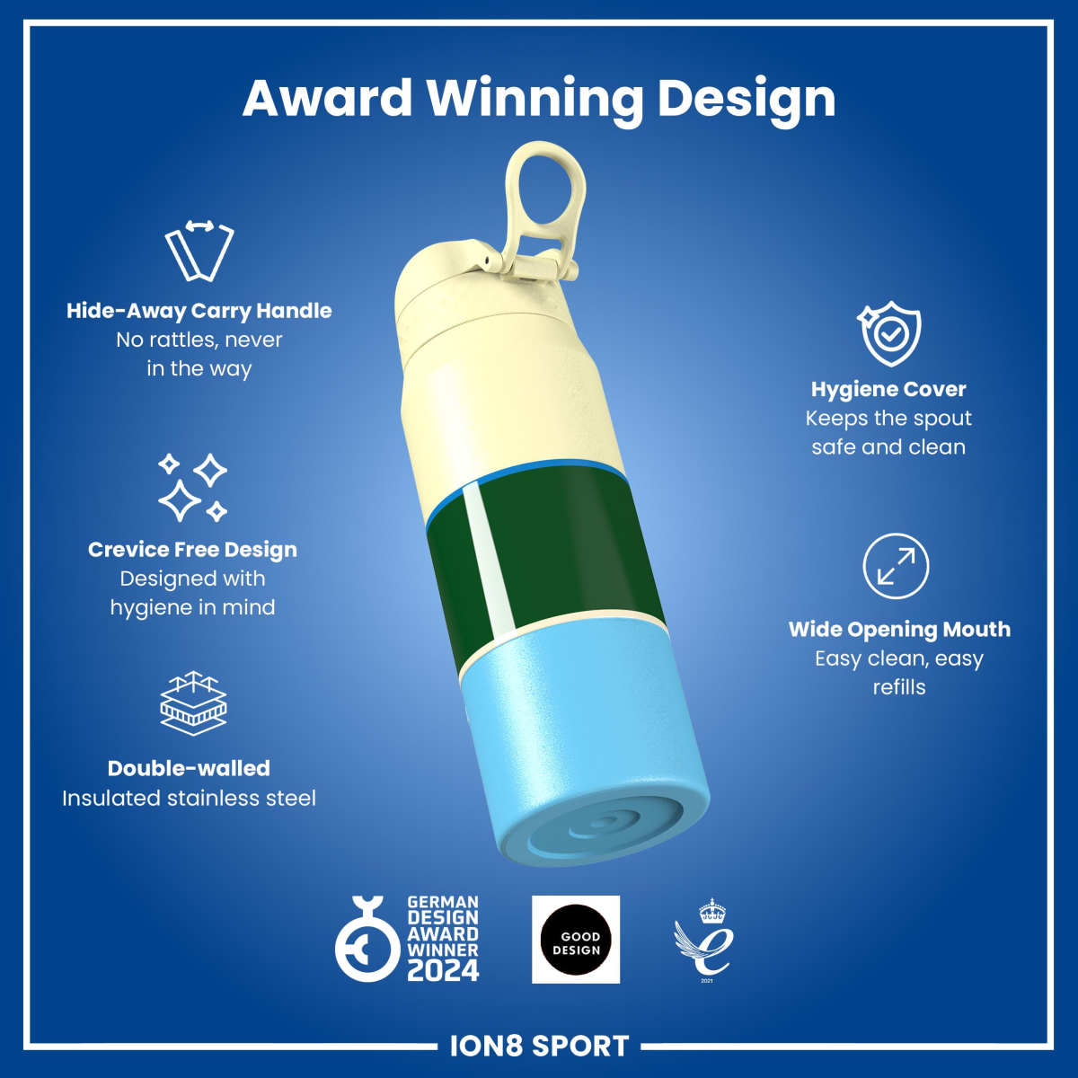 240-Degree Flip-Back Lid: The hygienic, one-touch lid flips back fully for a clear view of the action while you hydrate, keeping you focused in the moment.