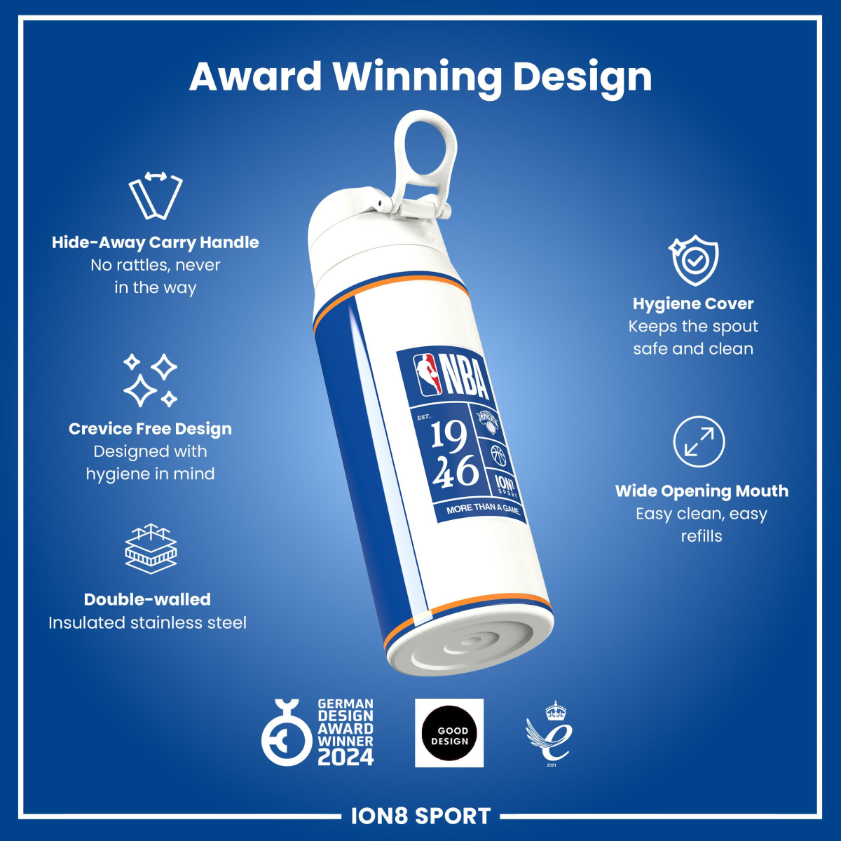 Raise your game with the Official NBA Thermal Insulated Bottle by ION8. Designed to meet the uncompromising standards of NBA, this 750ml double-wall stainless steel bottle combines premium performance with unmistakable NBA pride.