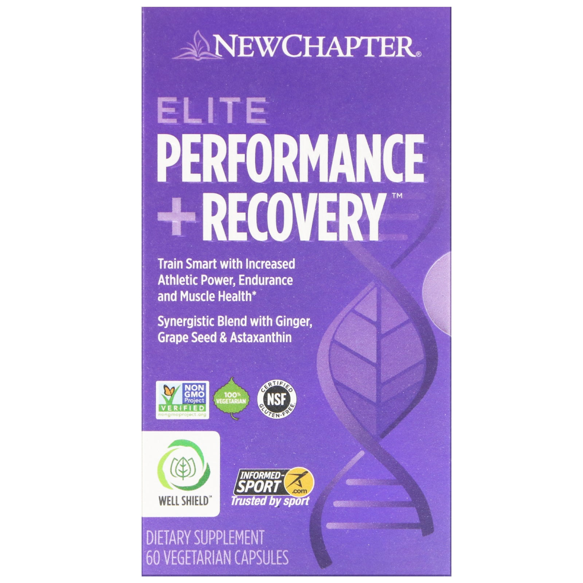 Train Strong with Increased Athletic Power, Endurance and Muscle Health Synergistic Blend with Ginger, Grape Seed & Astaxanthin Non GMO Project Verified 100% Vegetarian Certified Gluten-Free - NSF Well Shield Informed Sport - Trusted by Sport Dietary Supplement New Chapter's Guiding Principles To Deliver the Wisdom of Nature thus relieving suffering and promoting optimal health. To advance the organic mission, nourishing body and soul with the healing intelligence of pure whole foods and herbal supplements. To nurture and sustain Mother Earth, the source of natural healing. To honor and reward personal growth, for enlightened teamwork depends on the vitality of every member of the New Chapter family. Certified B Corporation - New Chapter is proud to be a Certified B Corp, using business as a force for good. Sharpen Your Edge Power your Workout Astaxanthin, a plant-nutrient with strong antioxidant action, is clinically studied to increase athletic power output and improve competitive time trial results. Enhance Endurance Clinical-strength Astaxanthin supports physical endurance and helps maintain healthy, active muscle. With complementary Rhodiola and Kale sprouts. Recover Effectively A clinically studied dose of pure Ginger relieves post-workout muscle soreness and supports a healthy inflammation response for balanced recovery. Support Lean Muscle Grape Seed is clinically studied to support toned, lean muscle for optimal conditioning. Support Immune Defenses Maintain your healthy training schedule with Astaxanthin, clinically studied to support immune defenses in athletes. Founder's Message Delivering the Wisdom of Nature "Following our principles of acknowledging both science and tradition, I have formulated Elite Performance + Recovery to deliver clinically studied herbal ingredients that support elite-level physical benefits. Since founding New Chapter in 1982, our mission have never wavered. We deliver the wisdom of nature to support optimal health. I know you'll feel a difference!" Paul Schulick New Chapter Founder & Master Herbalist Well Shield: Proven at cellular level† to: Protect cell health by boosting antioxidant production*. Balance healthy inflammation response to protect cells from damage*. Recover ATP energy to support healthy cell activity*. †As shown in preclinical lab testing.