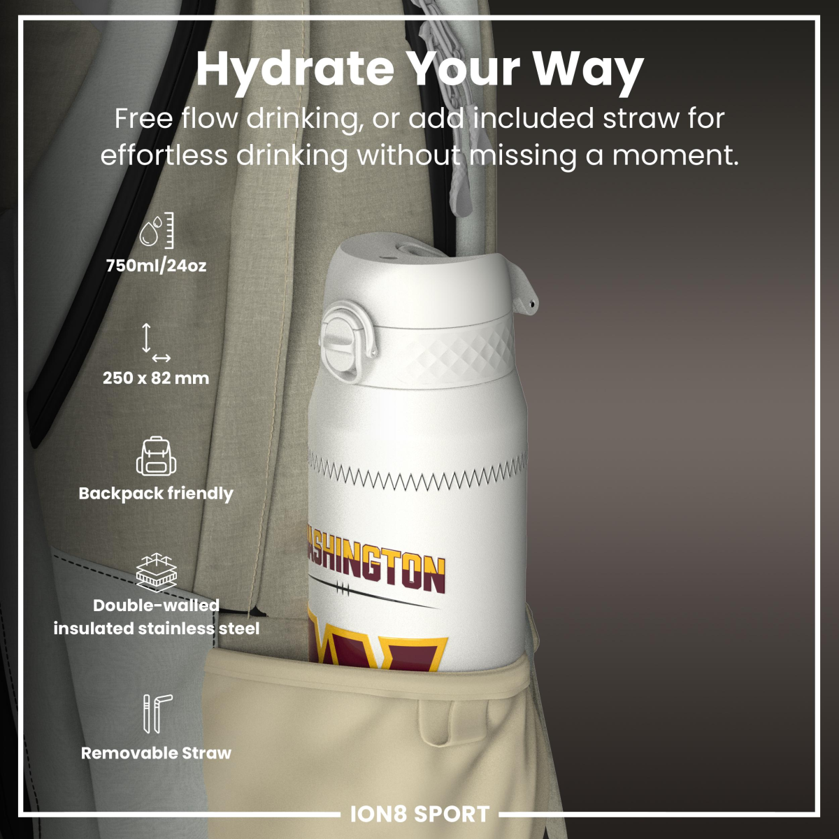 NFL x Ion8 Sports, Insulated Bottle, GameDay Series, Daniels Commanders, 750ml (24oz)