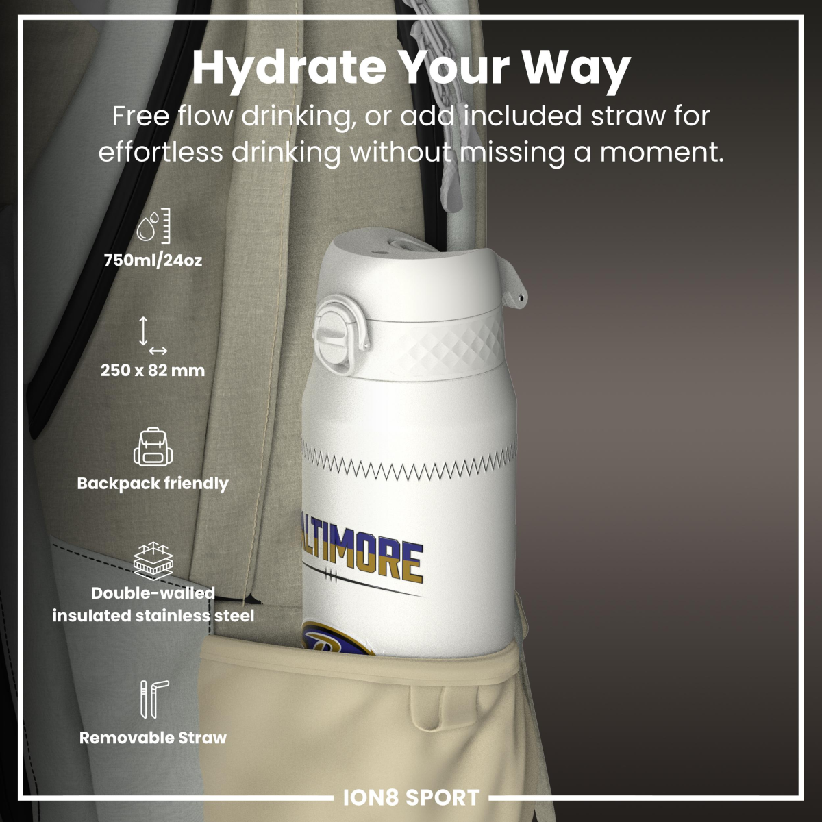NFL x Ion8 Sports, Insulated Bottle, GameDay Series, Lamar Ravens, 750ml (24oz)