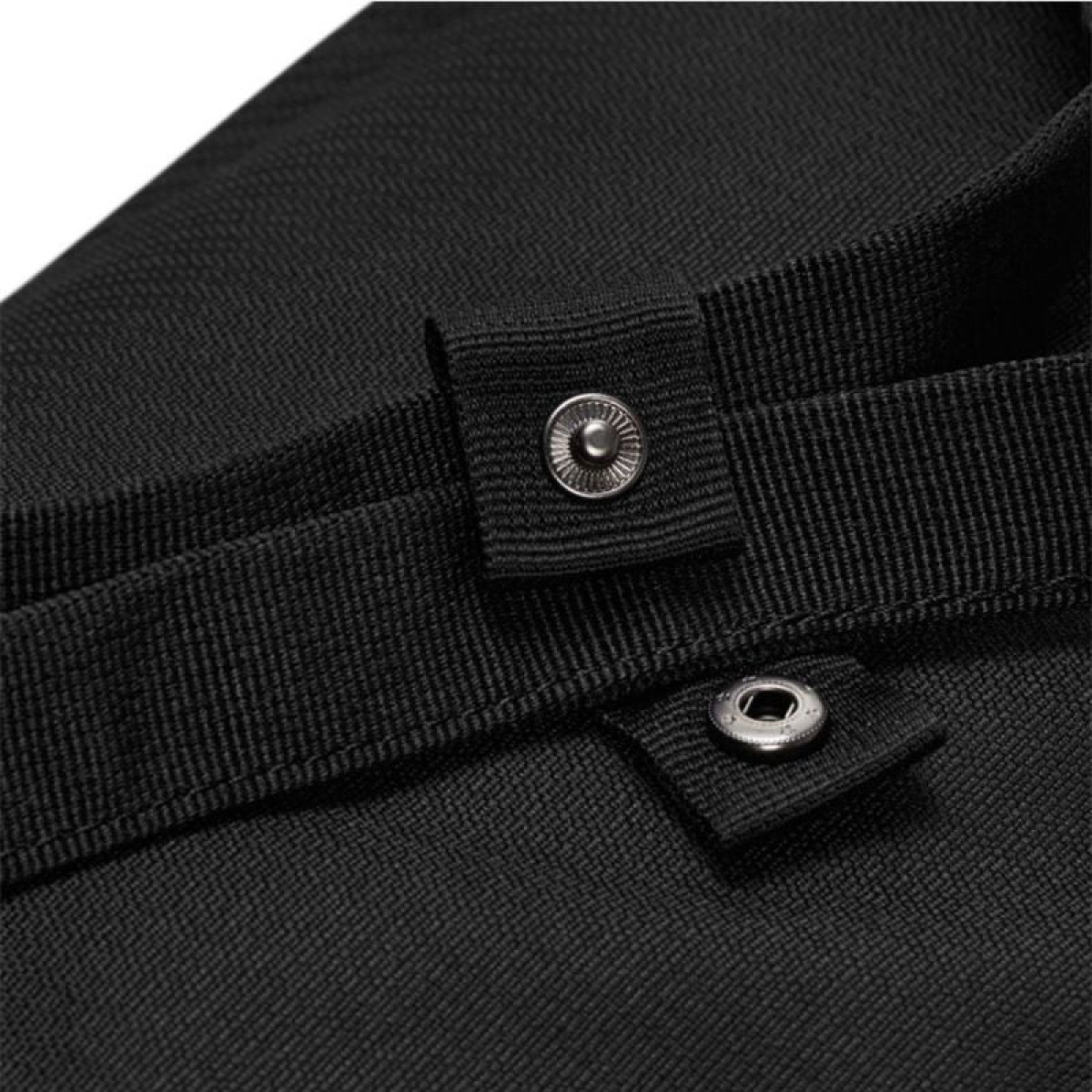 Double handles with snap closure.