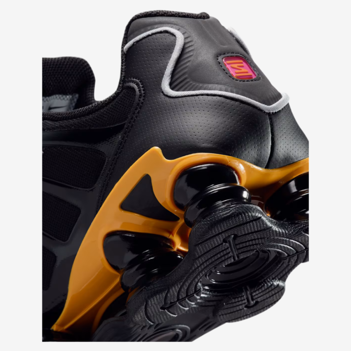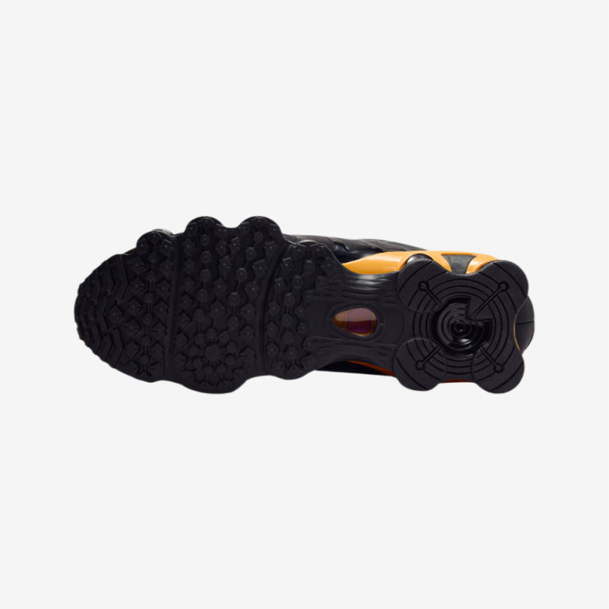 Sole Material: Full-length Shox cushioning columns; rubber outsole for traction