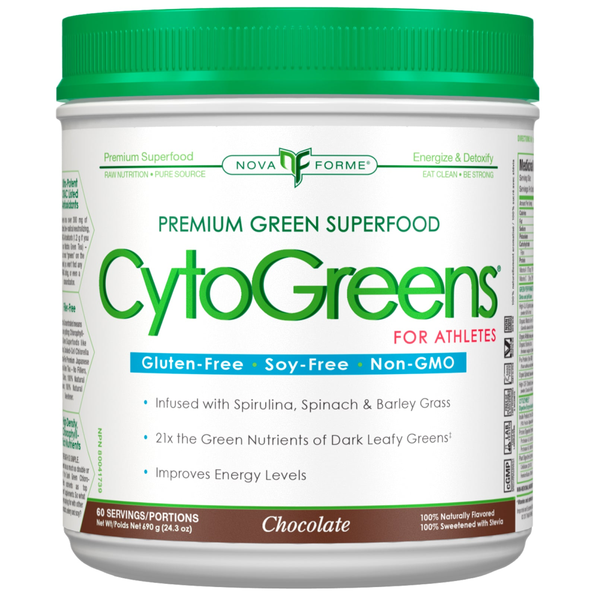 Raw Nutrition Pure Source Energize & Detoxify Eat Clean - Be Strong Gluten-Free Soy-Free Non-GMO Infused with Spirulina, Spinach & Barley Grass 21x the Green Nutrients of Dark Leafy Greens‡ Improves Energy Levels Dietary Supplement 60 Servings 100% Naturally Flavored cGMP Registered Facility Free of Pesticides & Solvents Vegan CytoGreens represents a revolution in the way you deliver nutrients to your body. 80% of CytoGreens is our nutrient-rich, exclusive Green Performance Matrix. CytoGreens, is a lecithin-free product with double the amount of green ingredients as leading "greens" supplements. How Does CytoGreens Enhance Performance and Recovery? The nutrients in CytoGreens helps the body recycle energy more efficiently while exercising. Better still, you get the dark greens and color-rich, anti-oxidant berry nutrients your body needs! Increases Muscle Performance, Cardio Endurance & Reduces Fatigue Active Energy Regenerator AER is a 100% Natural Blend of 5 Key Botanical Extracts that may help reduce oxidative damage resulting in improved recovery. Increased Energy Greater Endurance Increased Recovery In creating CytoGreens, we focused on highly concentrated, truly green, nutrient-rich raw-sourced foods in amounts suitable for athletes who demand more from their bodies. Packed with High-ORAC Antioxidants; Fiber-Rich Omega 3 EFAs; 8-Enzyme Cytozymes to maximize absorption; and a Best-of-Breed, Endurance and Stamina blend, with Cordyceps, Panax Ginseng, Reishi Mushroom and Astragalus. 5,630 µmolTE ORAC in every Serving! (48,957 µmolTE/100 g) Ingredient Amounts that Matter Many so called "green" supplements supply dozens and dozens of ingredients at dosages that are so small, it's a wonder they are there at all, 5 mg here, 10 mg there - truly miniscule amounts. Research-Backed Best-of-Breed 100% Natural ingredients are backed by scientific studies showing improvements in Energy Levels and Endurance. True Bio-Availability CytoGreens has Cytozymes, a custom 8 enzyme high-potency blend that has as much as 20X the enzyme activity of leading "greens" supplements. Cytozymes helps break down the raw, whole-food ingredients to help release nutrients for optimal digestion & bioavailability. 100% Lecithin Free Lecithin is a common allergen and industrial emulsifier. Why pay for non-green, cheap filler Lecithin as the #1 Ingredient in leading "greens" supplements? CytoGreens has Zero Lecithin! As much as 25% of top "greens" formulas contain this filler. Ultra-Potent ORAC Listed Antioxidants Cytogreens has over 300 mg of standardized, free-radical neutralizing, High-ORAC Antioxidants (1.2 g if you count our Matcha Green Tea) - look at most "greens" on the market, you won't find any ORAC rating, or even a standardization. Filler-Free Ultra-Concentrated means you are getting Chlorophyll-Rich Green Superfoods like Spirulina, Cracked-Cell Chlorella and Ultra-Fine Premium Japanese Matcha Green Tea - No Fillers, No Colors, 100% Natural Flavor, 100% Natural Sweetener. High-Density, Chlorophyll-Rich Nutrients The Math is Simple. CytoGreens has as much as Double or more of the Dark Green Chlorophyll-Rich nutrients as top "greens" supplements. So what are you paying for with other products, celery and soy? ‡CytoGreens has 21 times the dark green pigment chlorophyll as a serving of dark leafy greens.