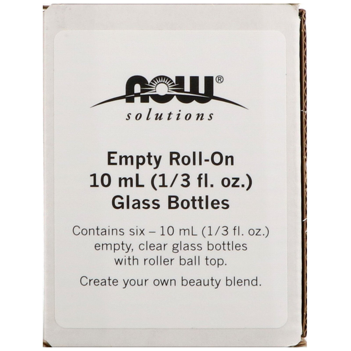 Create Your Own Beauty Blend Contains six – 10 ml (1/3 fl. oz.) empty, clear glass bottles with roller ball top. Applying your favorite home body care products topically is a lot easier with NOW Solutions empty clear glass bottle with roll-on lid. This convenient 10 ml bottle is easy to carry with you, and the included blank labels ensure you’ll always know what’s in the bottle.
