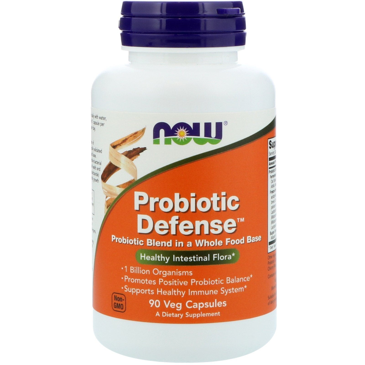 Probiotic Blend in a Whole Food Base Healthy Intestinal Flora 1 Billion Organisms Promotes Positive Probiotic Balance Supports Healthy Immune System Non-GMO A Dietary Supplement Probiotics/Enzymes/Digestive Family Owned Since 1968 GMP Quality Assured NOW Probiotic Defense is a combination of "friendly" probiotic bacteria, including clinically validated strains, blended into a fermented whole food base. NOW Probiotic Defense combines 13 active bacterial strains formulated to support gastrointestinal health and immune system function. FOS (fructo-oligosaccharide) is also included in this product to assist healthy growth of Acidophilus and Bifidus organisms.