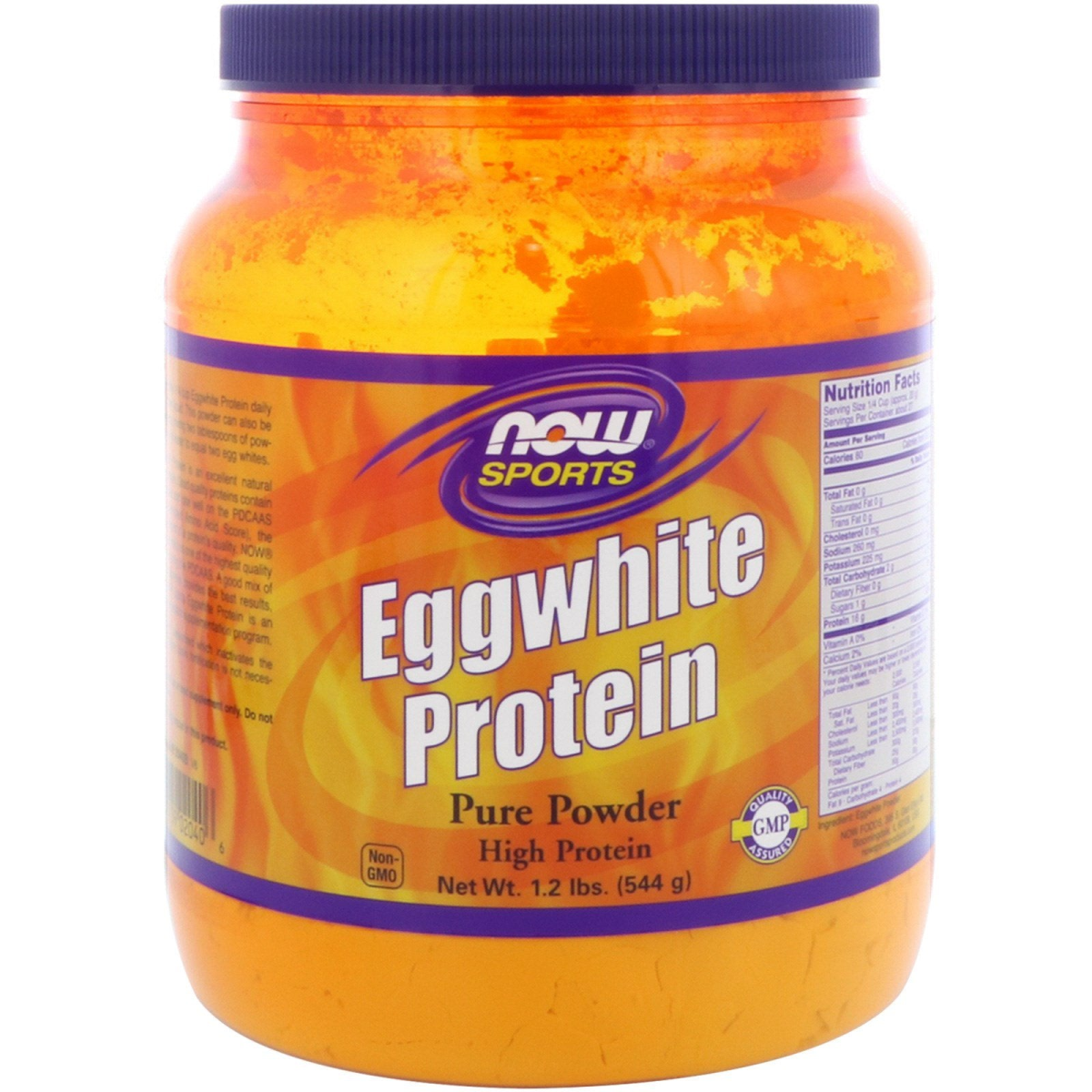 Pure Powder High Protein Non-GMO GMP Quality Assured NOW Sports Eggwhite Protein is an excellent natural source of high quality protein. Good quality proteins contain little fat or carbohydrates and rate well on the PDCAAS (Protein Digestibility Corrected Amino Acid Score), the most accurate measurement of a protein's quality. NOW Sports Eggwhite Protein rates as one of the highest quality proteins available when using the PDCAAS. A good mix of proteins from different sources provides the best results, and high quality NOW Sports Eggwhite Protein is an excellent addition to any protein supplementation program. This Eggwhite Powder is pasteurized which inactivates the avidin glycoprotein. Therefore, biotin fortification is not necessary for this product.