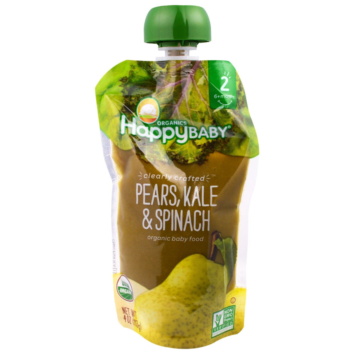 Nurture Inc. (Happy Baby) Baby Food Stage 2 Clearly Crafted 6+ Months Pears Kale & Spinach 4.0 oz (113 g)