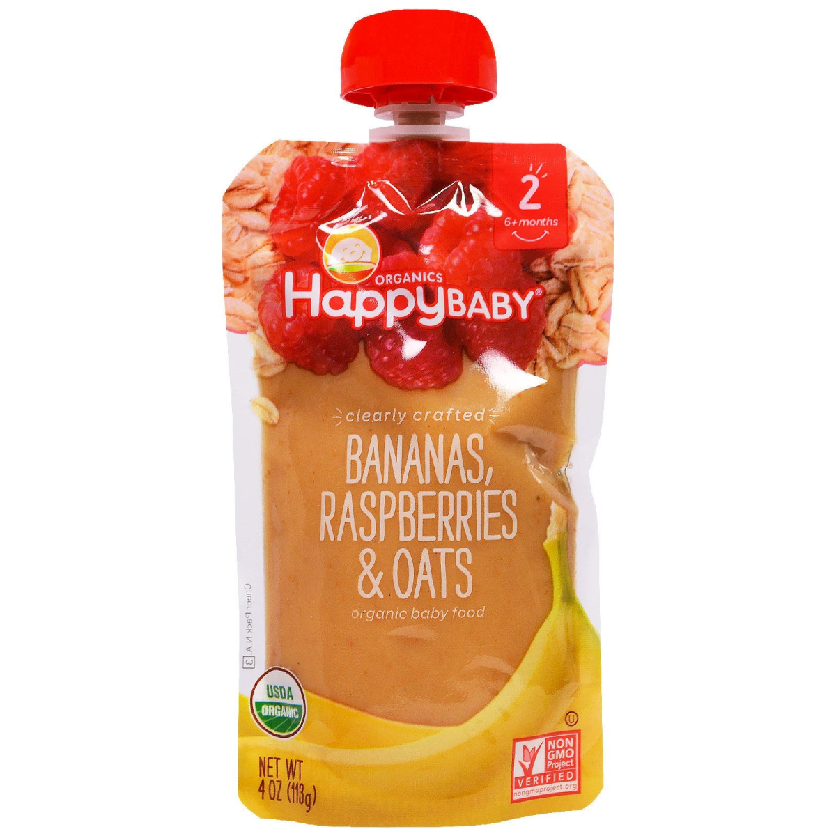 Nurture Inc. (Happy Baby) Baby Food Stage 2 Clearly Crafted Bananas Raspberries & Oats 6+ Months 4 oz (113 g)
