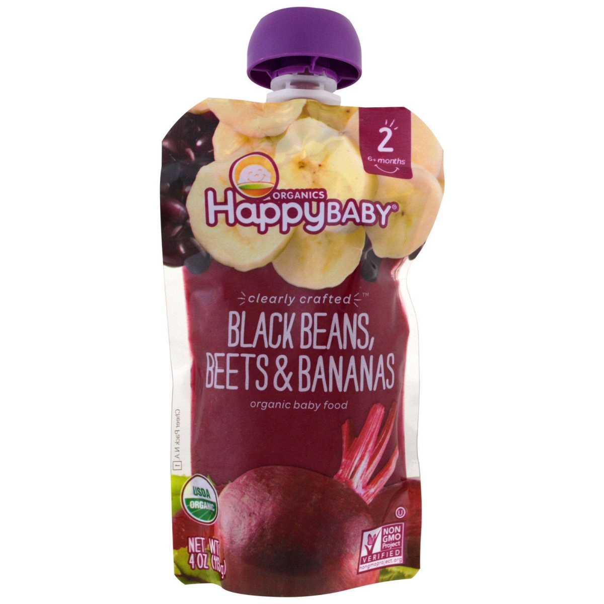 Nurture Inc. (Happy Baby) Baby Food Stage 2 Clearly Crafted Black Beans Beets & Bananas 6+ Months 4 oz (113 g)
