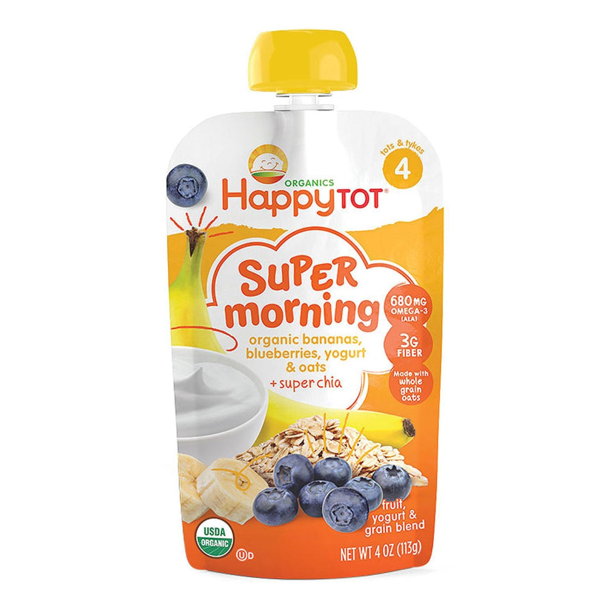 Nurture Inc. (Happy Baby) Happy Tot Stage 4 Super Morning Fruit Yogurt & Grain Blend Bananas Blueberries Yogurt & Oats Plus Super Chia 4 oz (113 g)