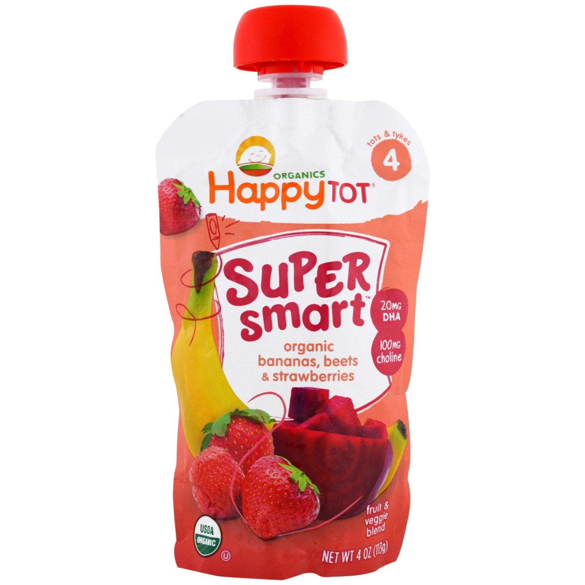 Nurture Inc. (Happy Baby) Happy Tot Stage 4 Super Smart Fruit & Veggie Blend Bananas Beets & Strawberries 4 oz (113 g)